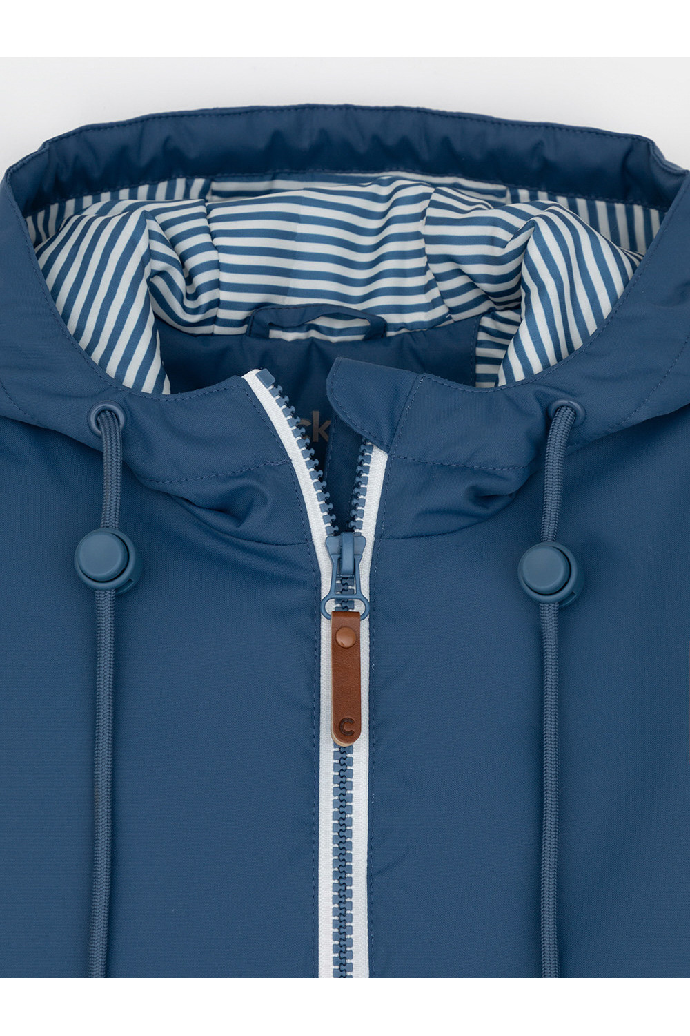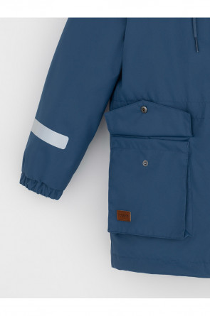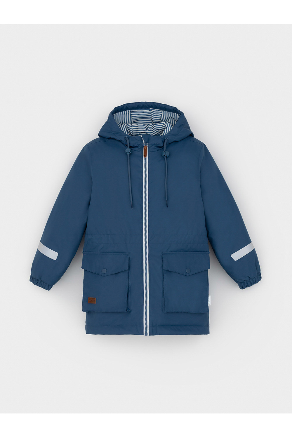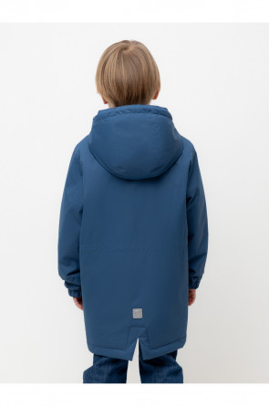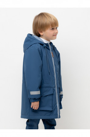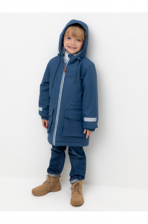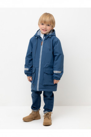 Демисезонная куртка для мальчика с утеплителем SEE®: 120 г/м2. Выполнена из мембранной ткани с дополнительной тефлоновой обработкой. Данный вид обработки предохраняет изделие от загрязнения и лучше отводит влагу. Подклад из 100% полиэстера. У изделия предусмотрена защита подбородка. Несъемный капюшон имеет эластичную утяжку со стопперами. Низ рукавов на эластичной резинке для лучшего прилегания. На талии утяжка при помощи шнура со стопперами. По бокам два накладных кармана с клапанами. Во всех изделиях верхнего ассортимента для безопасности ребенка предусмотрены светоотражающие элементы.