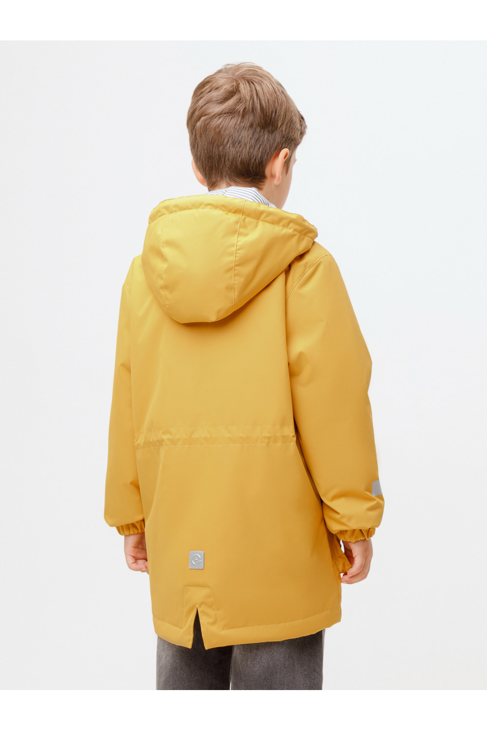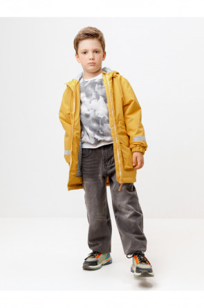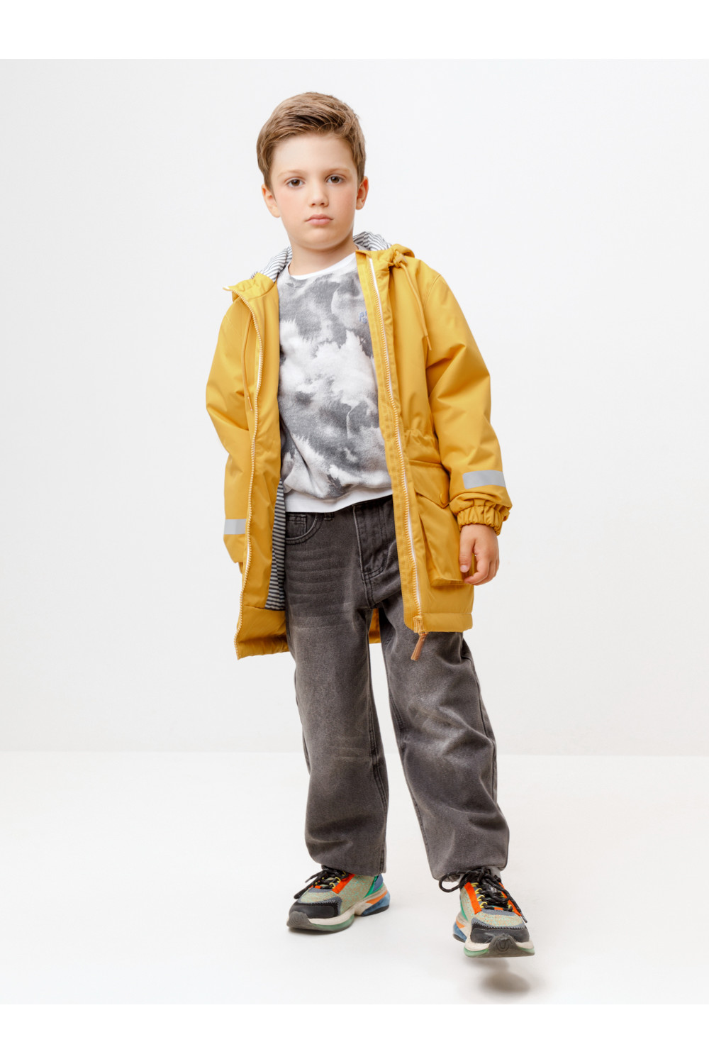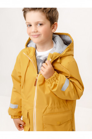 Демисезонная куртка для мальчика с утеплителем SEE®: 120 г/м2. Выполнена из мембранной ткани с дополнительной тефлоновой обработкой. Данный вид обработки предохраняет изделие от загрязнения и лучше отводит влагу. Подклад из 100% полиэстера. У изделия предусмотрена защита подбородка. Несъемный капюшон имеет эластичную утяжку со стопперами. Низ рукавов на эластичной резинке для лучшего прилегания. На талии утяжка при помощи шнура со стопперами. По бокам два накладных кармана с клапанами. Во всех изделиях верхнего ассортимента для безопасности ребенка предусмотрены светоотражающие элементы.