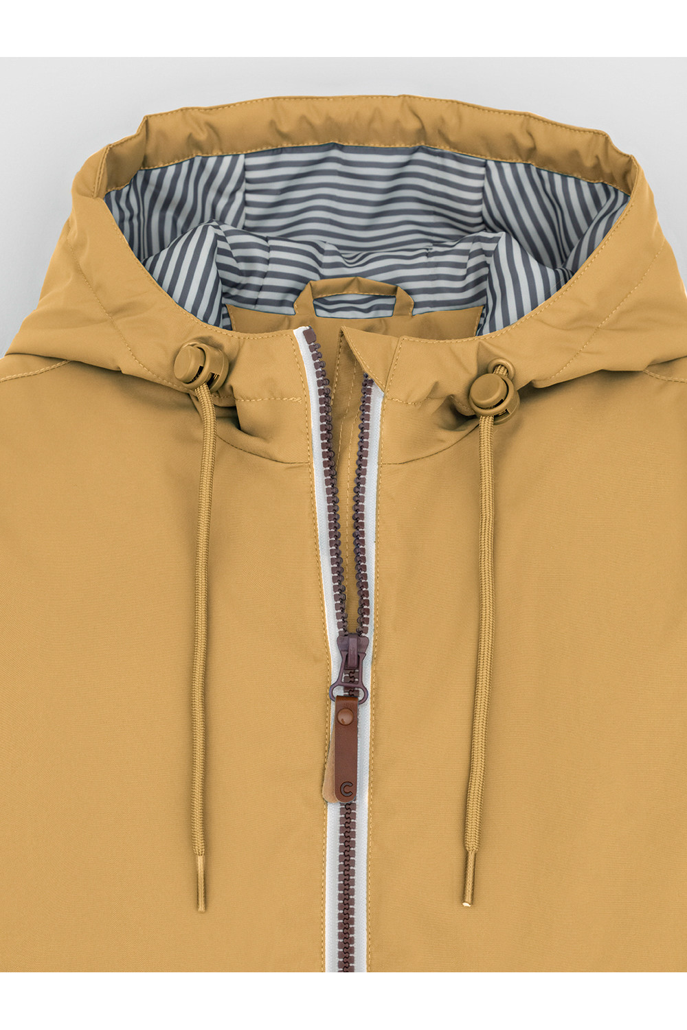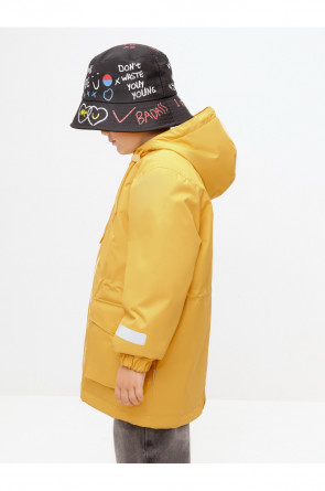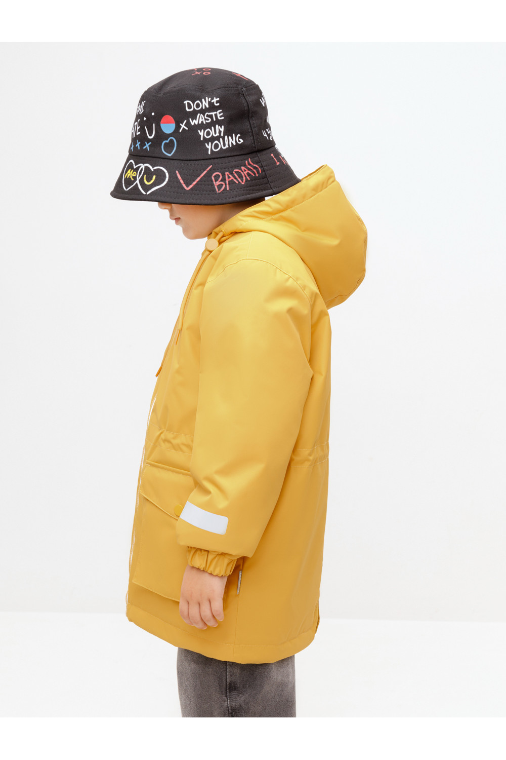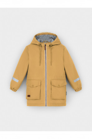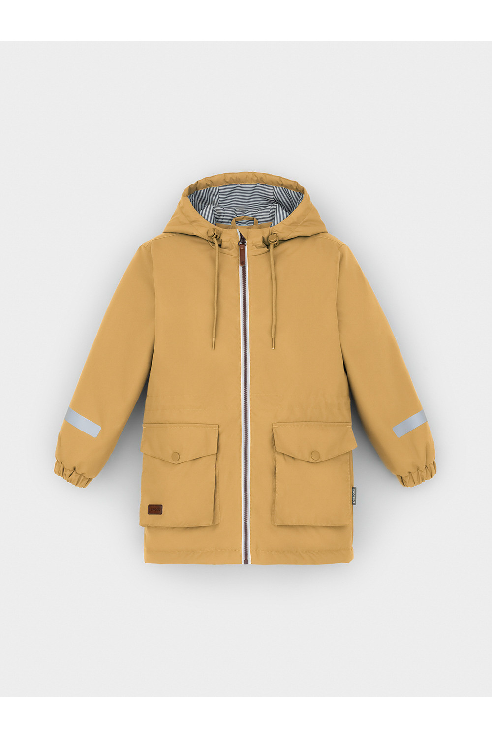 Демисезонная куртка для мальчика с утеплителем SEE®: 120 г/м2. Выполнена из мембранной ткани с дополнительной тефлоновой обработкой. Данный вид обработки предохраняет изделие от загрязнения и лучше отводит влагу. Подклад из 100% полиэстера. У изделия предусмотрена защита подбородка. Несъемный капюшон имеет эластичную утяжку со стопперами. Низ рукавов на эластичной резинке для лучшего прилегания. На талии утяжка при помощи шнура со стопперами. По бокам два накладных кармана с клапанами. Во всех изделиях верхнего ассортимента для безопасности ребенка предусмотрены светоотражающие элементы.