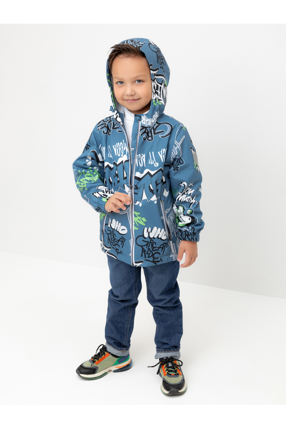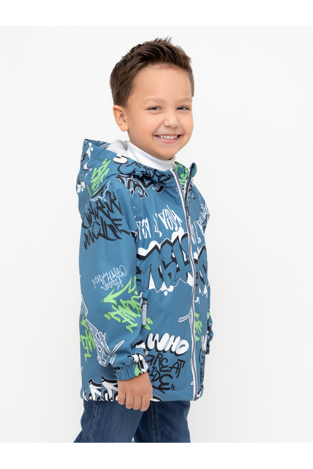 Ветровка для мальчика из мембранной ткани с дополнительной тефлоновой обработкой. Верхняя мембранная ткань 1000/1000 с тефлоновым покрытием отталкивает воду и грязь и обладает «дышащими» свойствами. Подкладка выполнена из флиса, 100% полиэстер. У изделия предусмотрена защита подбородка. Несъемный капюшон регулируется с помощью эластичного шнура со стопперами. Низ рукавов имеет эластичную резинку для лучшего прилегания. Во всех изделиях верхнего ассортимента для безопасности ребенка предусмотрены светоотражающие элементы.