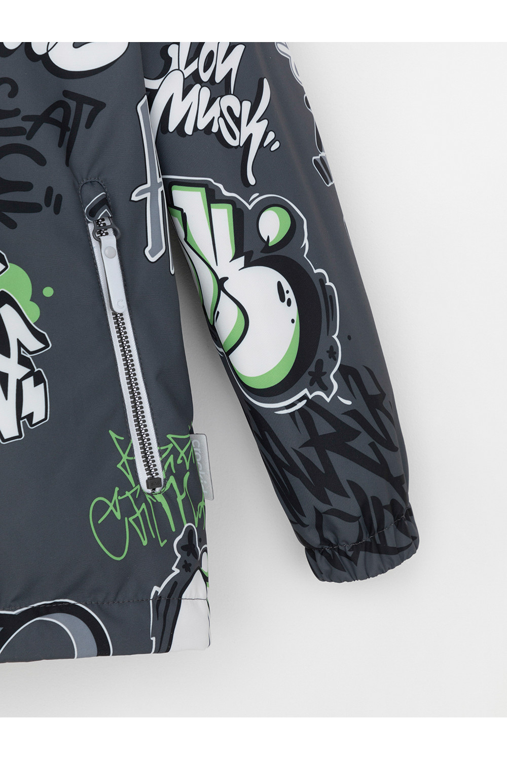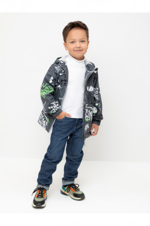 Ветровка для мальчика из мембранной ткани с дополнительной тефлоновой обработкой. Верхняя мембранная ткань 1000/1000 с тефлоновым покрытием отталкивает воду и грязь и обладает «дышащими» свойствами. Подкладка выполнена из флиса, 100% полиэстер. У изделия предусмотрена защита подбородка. Несъемный капюшон регулируется с помощью эластичного шнура со стопперами. Низ рукавов имеет эластичную резинку для лучшего прилегания. Во всех изделиях верхнего ассортимента для безопасности ребенка предусмотрены светоотражающие элементы.