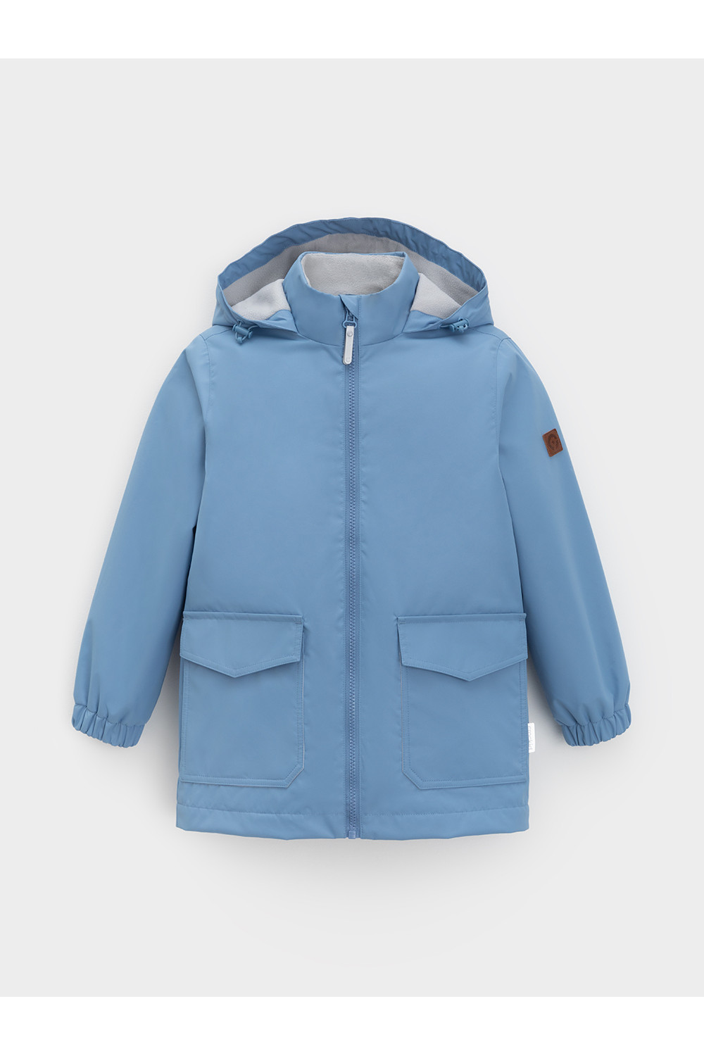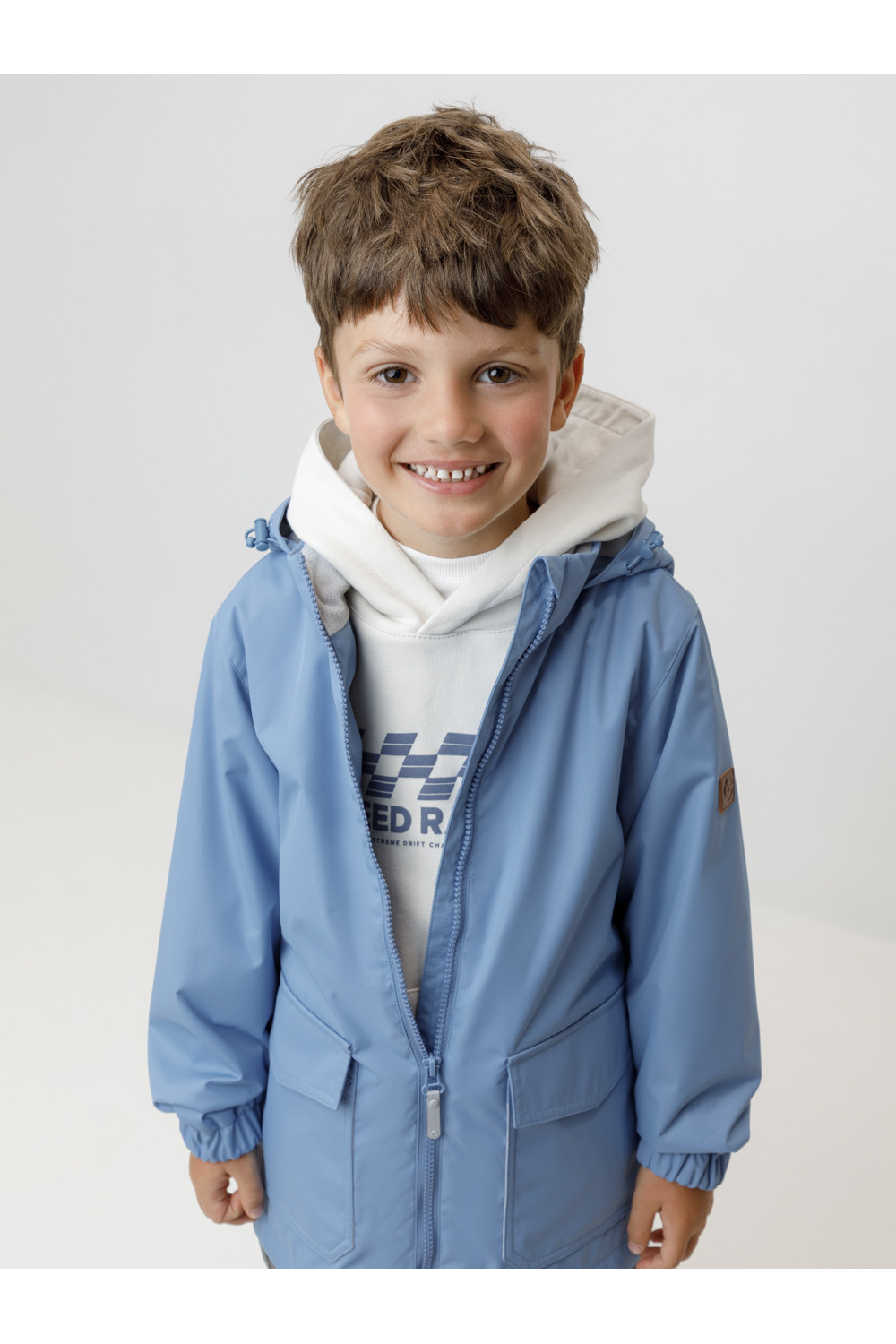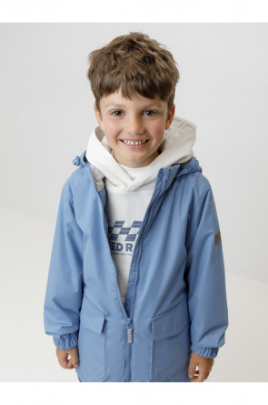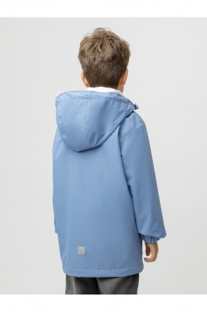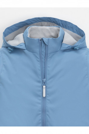 Ветровка для мальчика из мембранной ткани с дополнительной тефлоновой обработкой. Верхняя мембранная ткань 1000/1000 с тефлоновым покрытием отталкивает воду и грязь и обладает «дышащими» свойствами. Подкладка выполнена из флиса. Изделие застёгивается на молнию, предусмотрена защита подбородка. Несъёмный капюшон регулируется с помощью эластичного шнура со стопперами. Низ рукавов имеет эластичную резинку для лучшего прилегания. Во всех изделиях верхнего ассортимента для безопасности ребёнка предусмотрены светоотражающие элементы.