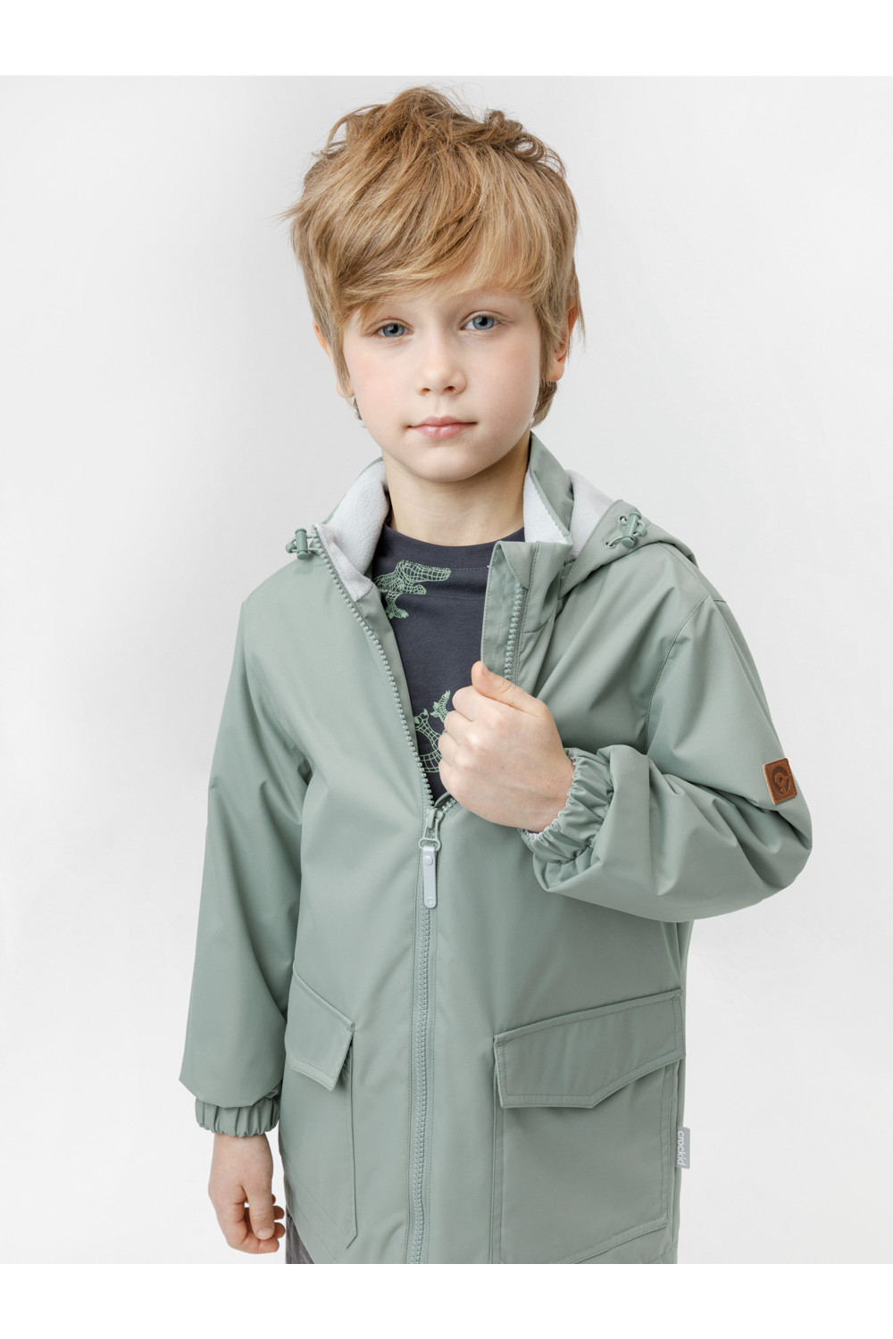 Ветровка для мальчика из мембранной ткани с дополнительной тефлоновой обработкой. Верхняя мембранная ткань 1000/1000 с тефлоновым покрытием отталкивает воду и грязь и обладает «дышащими» свойствами. Подкладка выполнена из флиса. Изделие застёгивается на молнию, предусмотрена защита подбородка. Несъёмный капюшон регулируется с помощью эластичного шнура со стопперами. Низ рукавов имеет эластичную резинку для лучшего прилегания. Во всех изделиях верхнего ассортимента для безопасности ребёнка предусмотрены светоотражающие элементы.