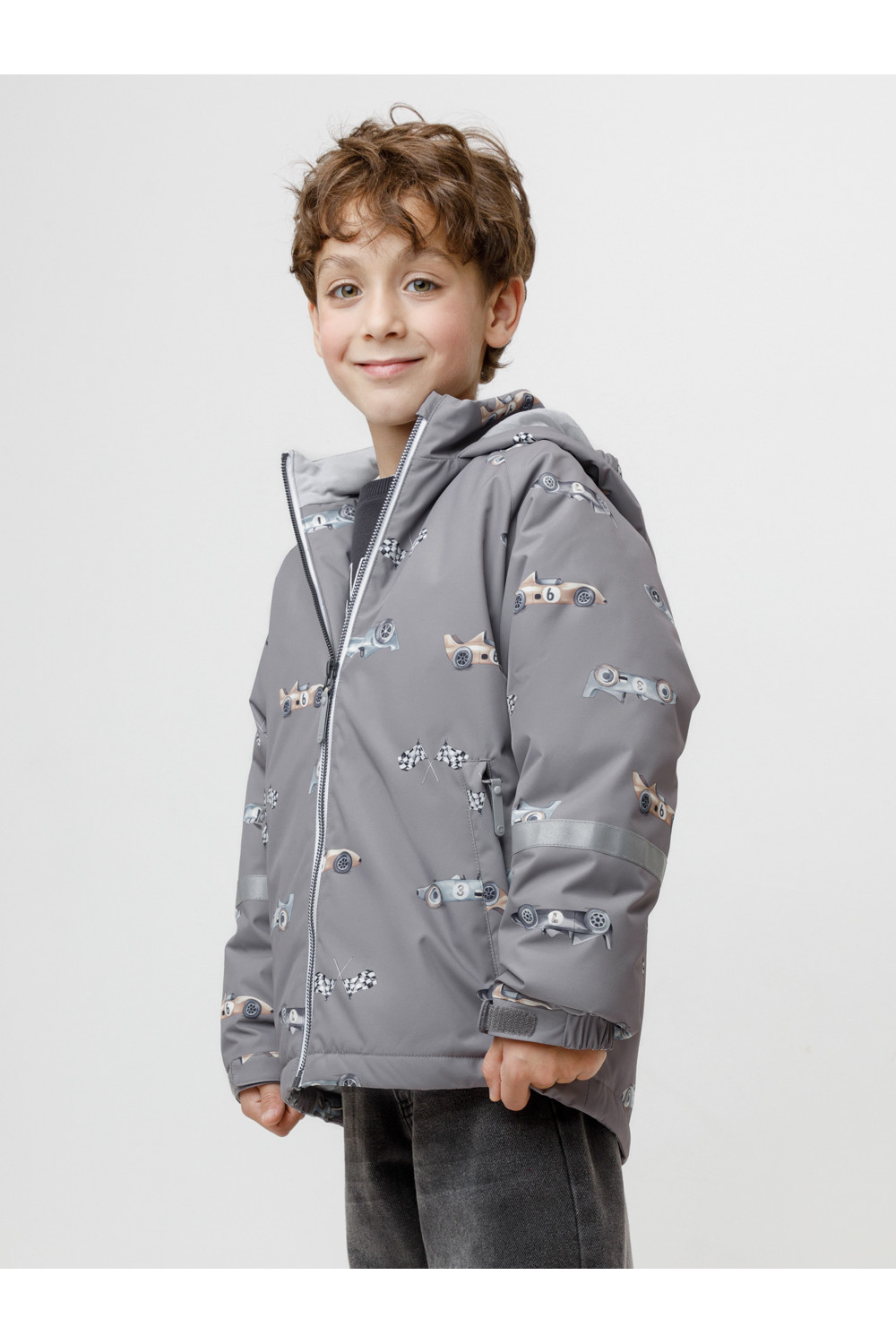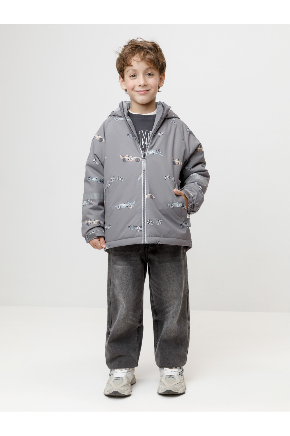 Демисезонная куртка для мальчика с утеплителем Fellex®: 120 г/м2. Выполнена из мембранной ткани с тефлоновой обработкой. Данный вид обработки предохраняет изделие от загрязнения и хорошо отталкивает влагу. Подклад выполнен из трикотажа в размерах 86-92 и 92-98 и из 100% полиэстера в размерах от 98-104 до 116-122. Куртка застёгивается на молнию, предусмотрена защита подбородка. Несъёмный капюшон имеет эластичные утяжки по бокам. Низ рукавов на эластичной резинке регулируется с помощью липучек для лучшего прилегания. По низу изделия эластичная утяжка со стопперами. По бокам два кармана на молниях. Во всех изделиях верхнего ассортимента для безопасности ребёнка предусмотрены светоотражающие элементы.
