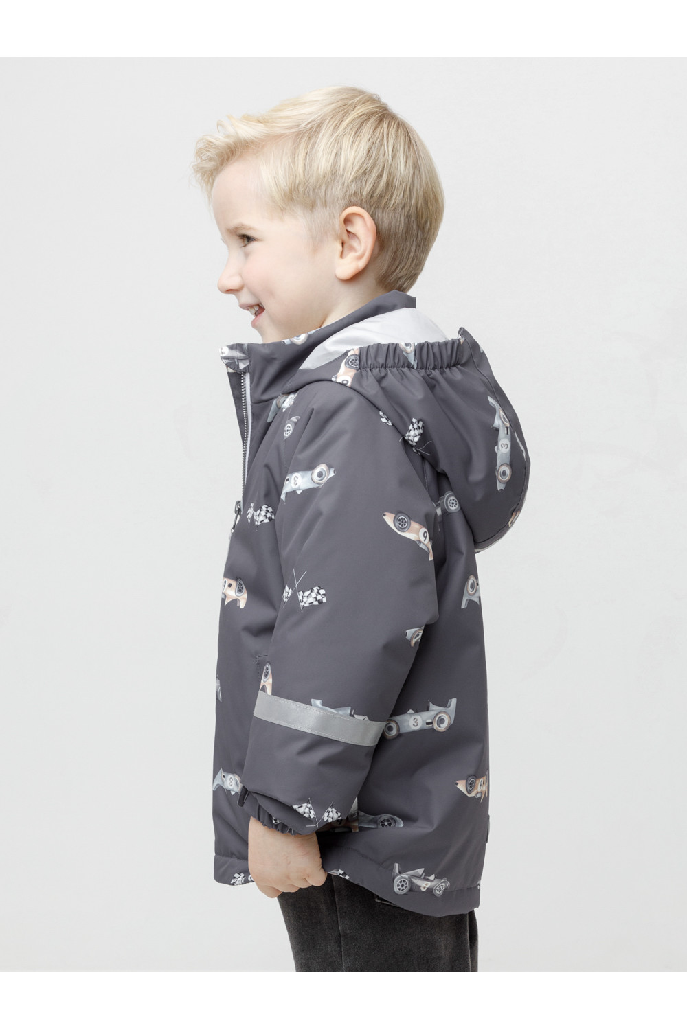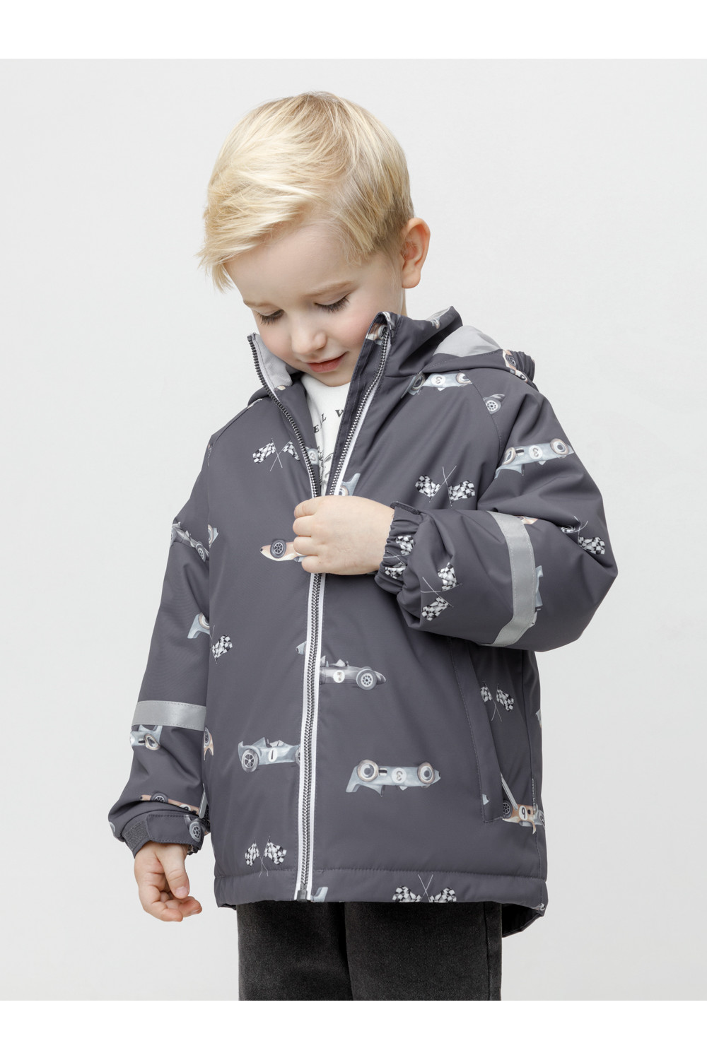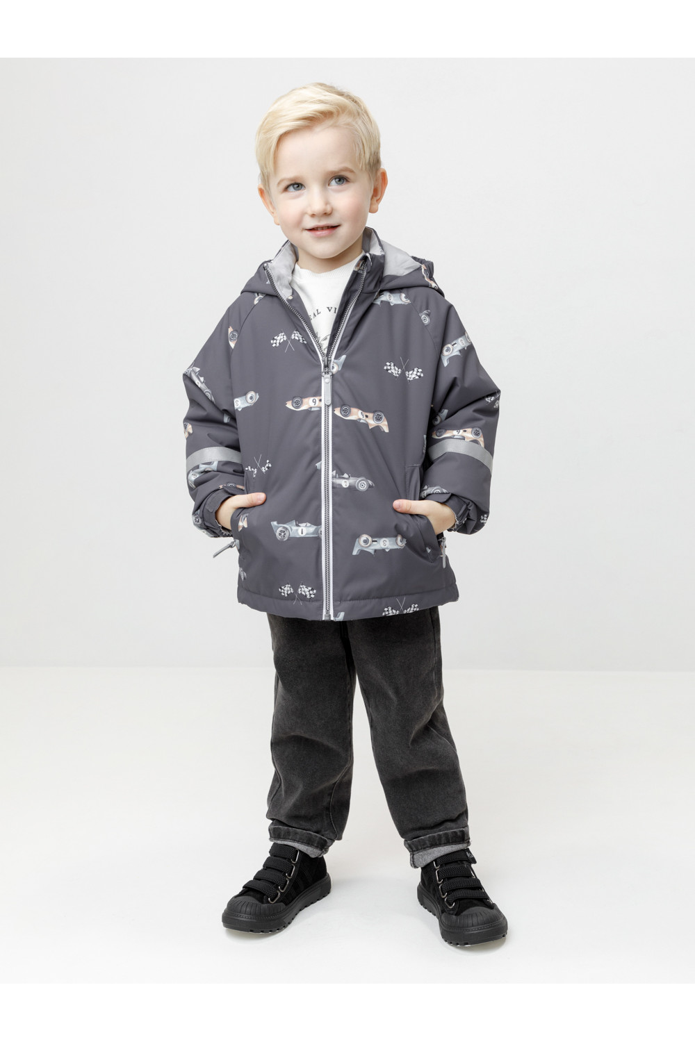 Демисезонная куртка для мальчика с утеплителем Fellex®: 120 г/м2. Выполнена из мембранной ткани с тефлоновой обработкой. Данный вид обработки предохраняет изделие от загрязнения и хорошо отталкивает влагу. Подклад выполнен из трикотажа в размерах 86-92 и 92-98 и из 100% полиэстера в размерах от 98-104 до 116-122. Куртка застёгивается на молнию, предусмотрена защита подбородка. Несъёмный капюшон имеет эластичные утяжки по бокам. Низ рукавов на эластичной резинке регулируется с помощью липучек для лучшего прилегания. По низу изделия эластичная утяжка со стопперами. По бокам два кармана на молниях. Во всех изделиях верхнего ассортимента для безопасности ребёнка предусмотрены светоотражающие элементы.