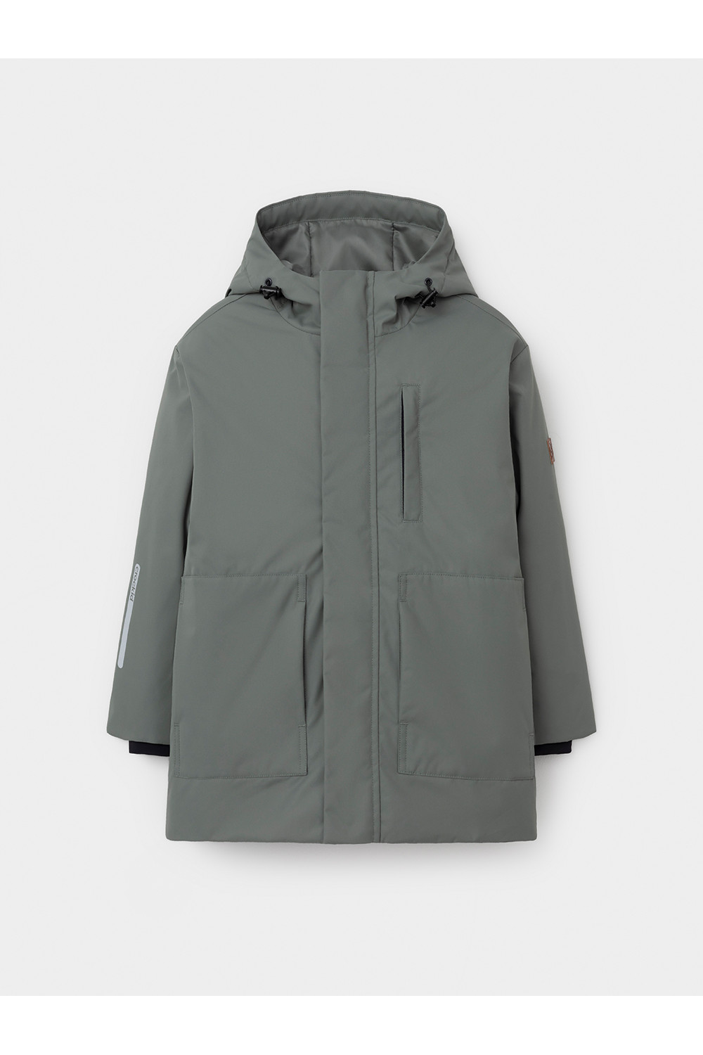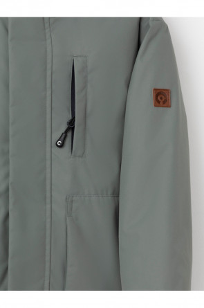 Демисезонная куртка для мальчика с утеплителем SEE, 120 г/м2. Выполнена из мембранной ткани с тефлоновой обработкой. Данный вид обработки предохраняет изделие от загрязнения и хорошо отталкивает влагу. Подклад выполнен из 100% полиэстера. Куртка застёгивается на молнию с дополнительной внешней ветрозащитной планкой на кнопках. Предусмотрена защита подбородка. Несъёмный капюшон имеет эластичную утяжку со стопперами. На рукавах мягкие эластичные внутренние манжеты. Есть два кармана по бокам и нагрудный карман на молнии. Во всех изделиях верхнего ассортимента для безопасности ребёнка предусмотрены светоотражающие элементы.