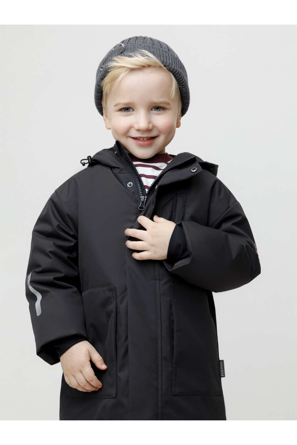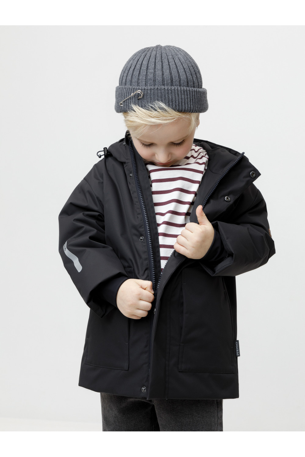 Демисезонная куртка для мальчика с утеплителем SEE, 120 г/м2. Выполнена из мембранной ткани с тефлоновой обработкой. Данный вид обработки предохраняет изделие от загрязнения и хорошо отталкивает влагу. Подклад выполнен из 100% полиэстера. Куртка застёгивается на молнию с дополнительной внешней ветрозащитной планкой на кнопках. Предусмотрена защита подбородка. Несъёмный капюшон имеет эластичную утяжку со стопперами. На рукавах мягкие эластичные внутренние манжеты. Есть два кармана по бокам и нагрудный карман на молнии. Во всех изделиях верхнего ассортимента для безопасности ребёнка предусмотрены светоотражающие элементы.