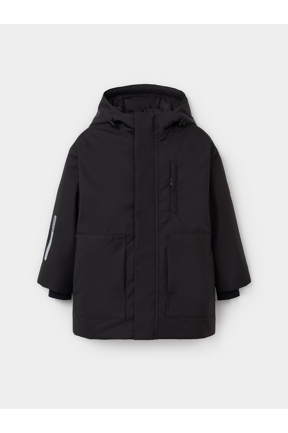 Демисезонная куртка для мальчика с утеплителем SEE, 120 г/м2. Выполнена из мембранной ткани с тефлоновой обработкой. Данный вид обработки предохраняет изделие от загрязнения и хорошо отталкивает влагу. Подклад выполнен из 100% полиэстера. Куртка застёгивается на молнию с дополнительной внешней ветрозащитной планкой на кнопках. Предусмотрена защита подбородка. Несъёмный капюшон имеет эластичную утяжку со стопперами. На рукавах мягкие эластичные внутренние манжеты. Есть два кармана по бокам и нагрудный карман на молнии. Во всех изделиях верхнего ассортимента для безопасности ребёнка предусмотрены светоотражающие элементы.