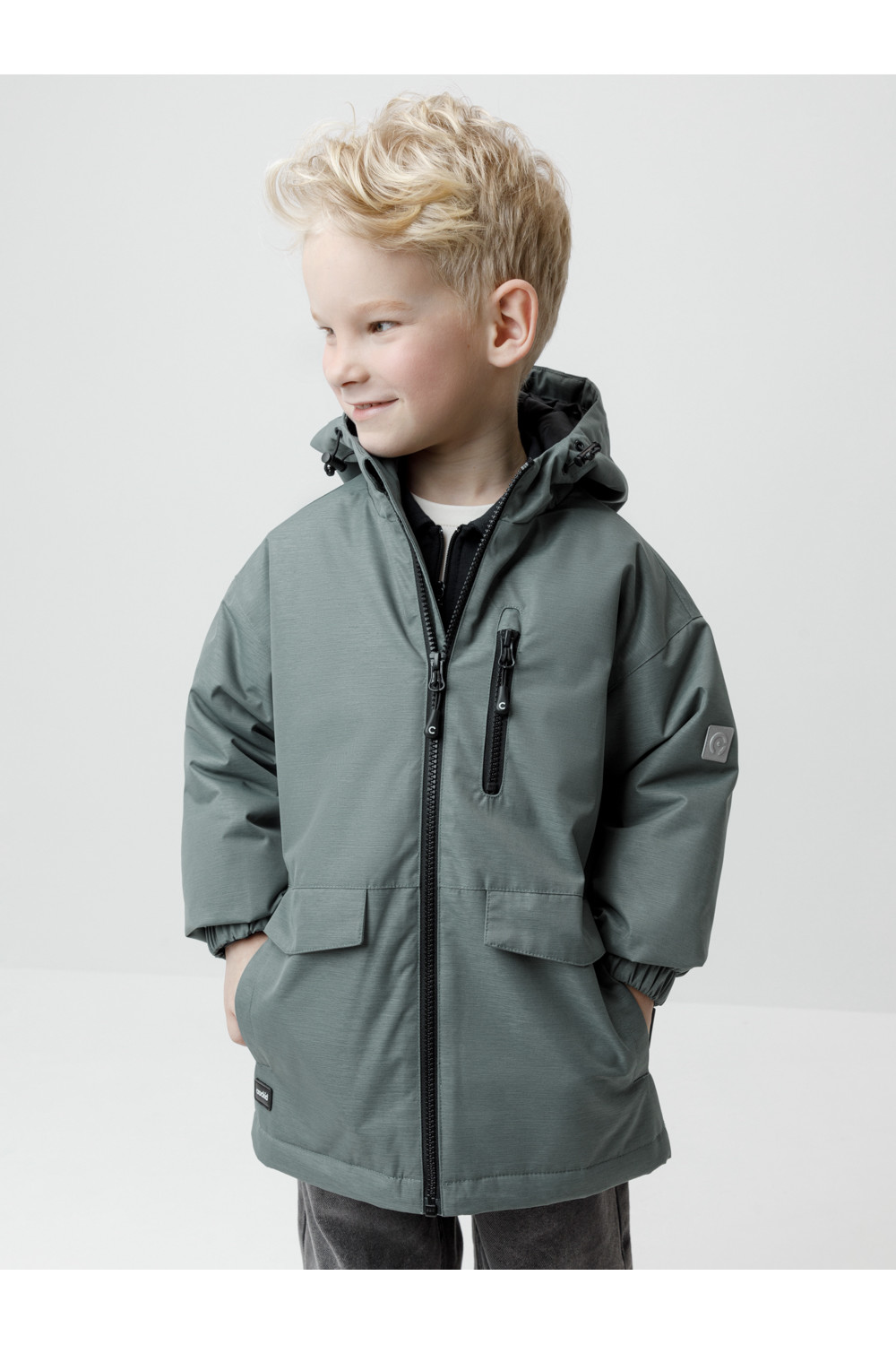 Демисезонная куртка для мальчика с утеплителем SEE, 120 г/м2. Выполнена из мембранной ткани с тефлоновой обработкой. Данный вид обработки предохраняет изделие от загрязнения и хорошо отталкивает влагу. Подклад выполнен из 100% полиэстера. Куртка застёгивается на молнию, предусмотрена защита подбородка. Несъёмный капюшон имеет эластичную утяжку со стопперами. На рукавах эластичные манжеты. Есть два кармана по бокам и нагрудный карман на молнии. Во всех изделиях верхнего ассортимента для безопасности ребёнка предусмотрены светоотражающие элементы.