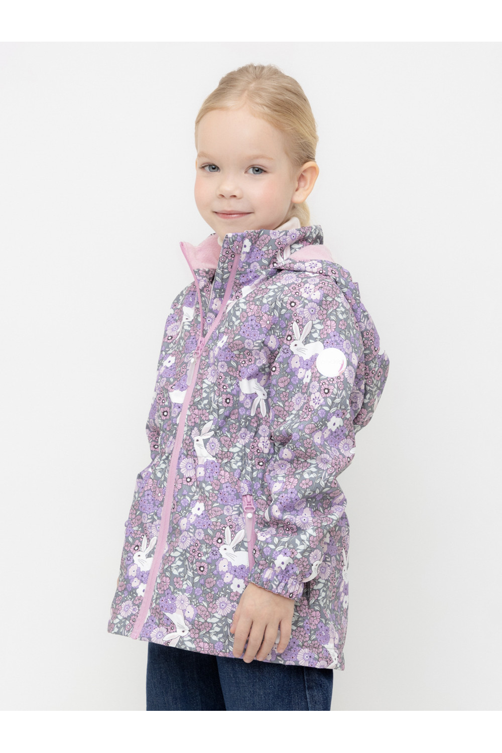 Ветровка для девочки из мембранной ткани с дополнительной тефлоновой обработкой. Верхняя мембранная ткань 1000/1000 с тефлоновым покрытием отталкивает воду и грязь и обладает «дышащими» свойствами. Подкладка выполнена из флиса, 100% полиэстер. У изделия предусмотрена защита подбородка. Несъемный капюшон регулируется с помощью эластичного шнура со стопперами. Низ рукавов и пояс изделия имеют эластичные резинки для лучшего прилегания. Во всех изделиях верхнего ассортимента для безопасности ребенка предусмотрены светоотражающие элементы.