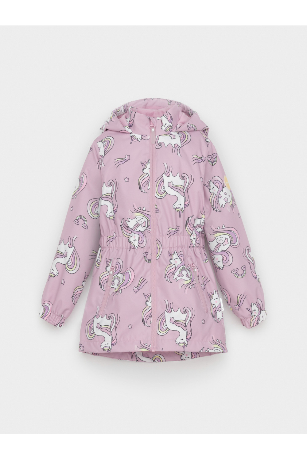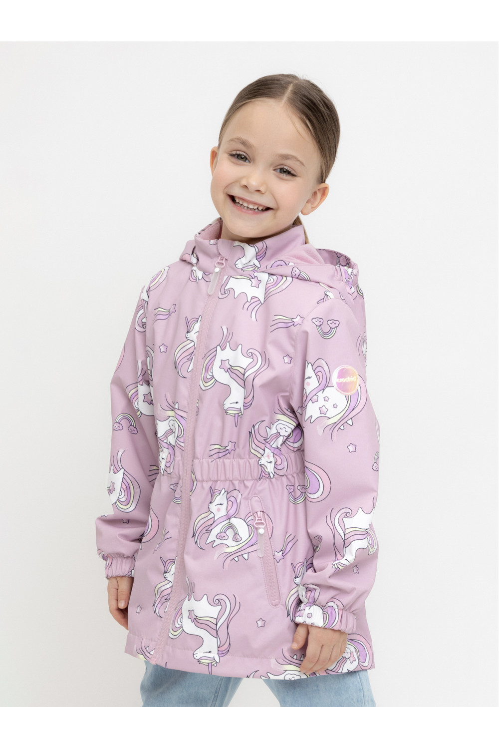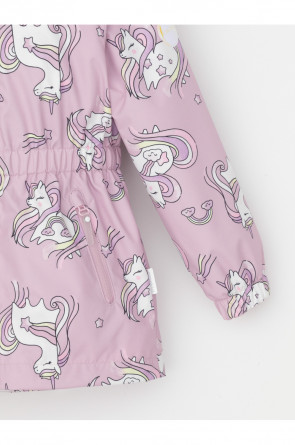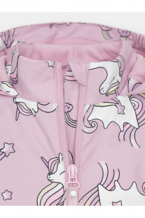 Ветровка для девочки из мембранной ткани с дополнительной тефлоновой обработкой. Верхняя мембранная ткань 1000/1000 с тефлоновым покрытием отталкивает воду и грязь и обладает «дышащими» свойствами. Подкладка выполнена из флиса, 100% полиэстер. У изделия предусмотрена защита подбородка. Несъемный капюшон регулируется с помощью эластичного шнура со стопперами. Низ рукавов и пояс изделия имеют эластичные резинки для лучшего прилегания. Во всех изделиях верхнего ассортимента для безопасности ребенка предусмотрены светоотражающие элементы.