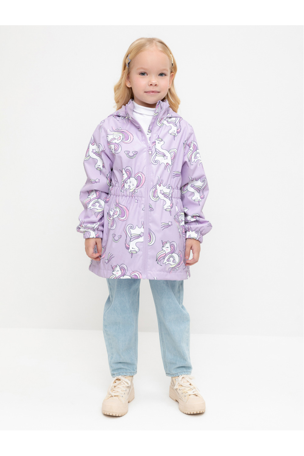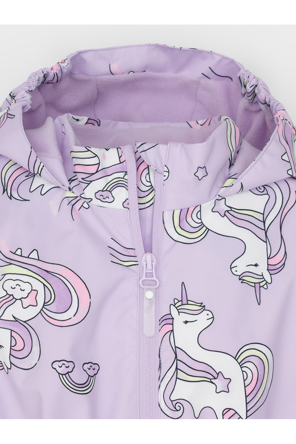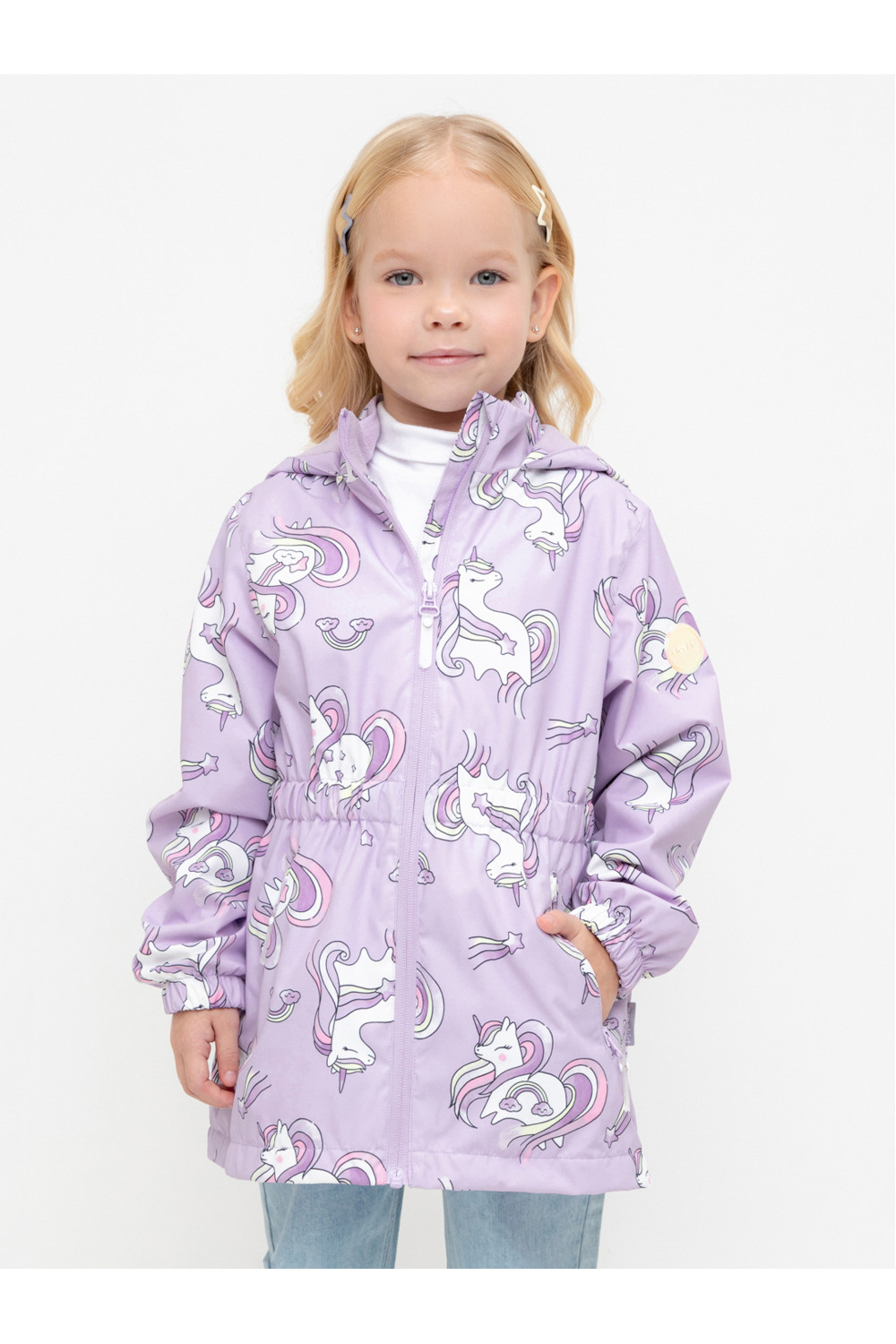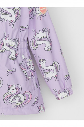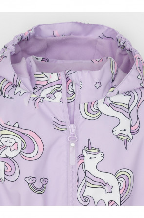 Ветровка для девочки из мембранной ткани с дополнительной тефлоновой обработкой. Верхняя мембранная ткань 1000/1000 с тефлоновым покрытием отталкивает воду и грязь и обладает «дышащими» свойствами. Подкладка выполнена из флиса, 100% полиэстер. У изделия предусмотрена защита подбородка. Несъемный капюшон регулируется с помощью эластичного шнура со стопперами. Низ рукавов и пояс изделия имеют эластичные резинки для лучшего прилегания. Во всех изделиях верхнего ассортимента для безопасности ребенка предусмотрены светоотражающие элементы.