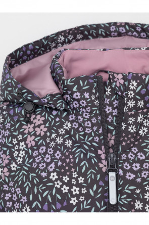 Демисезонная куртка для девочки с утеплителем SEE 120 г/м2. Выполнена из мембранной ткани с дополнительной тефлоновой обработкой. Данный вид обработки предохраняет изделие от загрязнения и лучше отводит влагу. Подклад из 100% полиэстра. У изделия предусмотрена защита подбородка. Несъемный капюшон регулируется с помощью эластичного шнура со стопперами. Низ рукавов изделия имеет эластичную резинку для лучшего прилегания. На талии эластичная резинка. Спереди два кармана на замках. Во всех изделиях верхнего ассортимента для безопасности ребенка предусмотрены светоотражающие элементы.