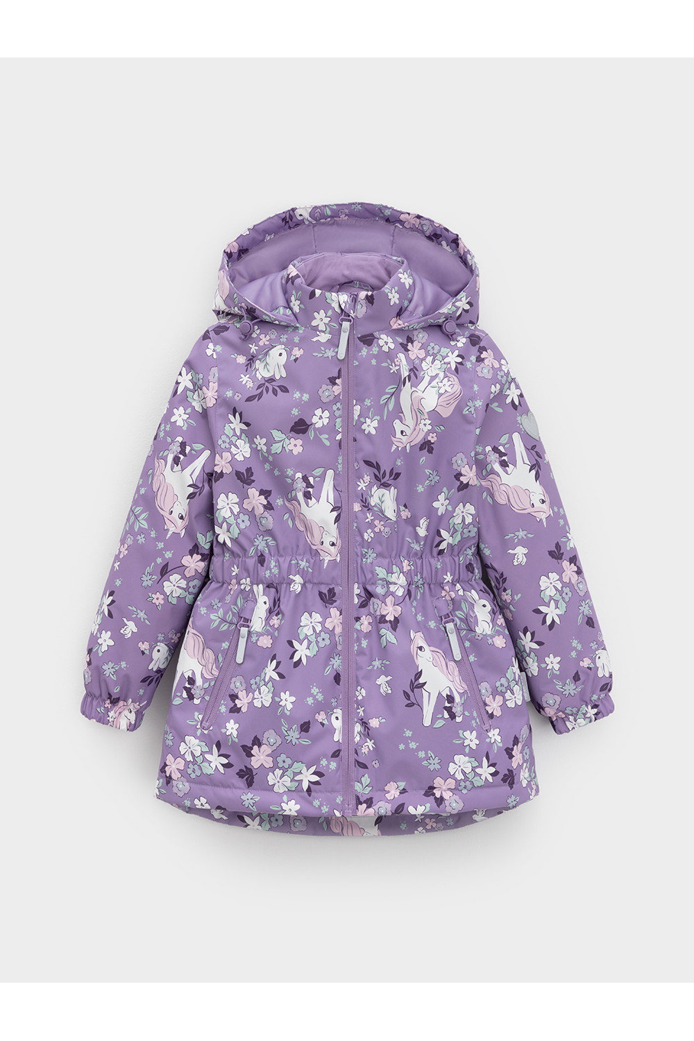 Демисезонная куртка для девочки с утеплителем SEE®: 120 г/м2. Выполнена из мембранной ткани с тефлоновой обработкой. Данный вид обработки предохраняет изделие от загрязнения и хорошо отталкивает влагу. Подклад из 100% полиэстера. Куртка застёгивается на молнию, предусмотрена защита подбородка. Несъёмный капюшон имеет эластичную утяжку со стопперами. Низ рукавов на эластичной резинке для лучшего прилегания. Утяжка по талии обеспечивает идеальную посадку по фигуре. По бокам два кармана. Во всех изделиях верхнего ассортимента для безопасности ребёнка предусмотрены светоотражающие элементы.