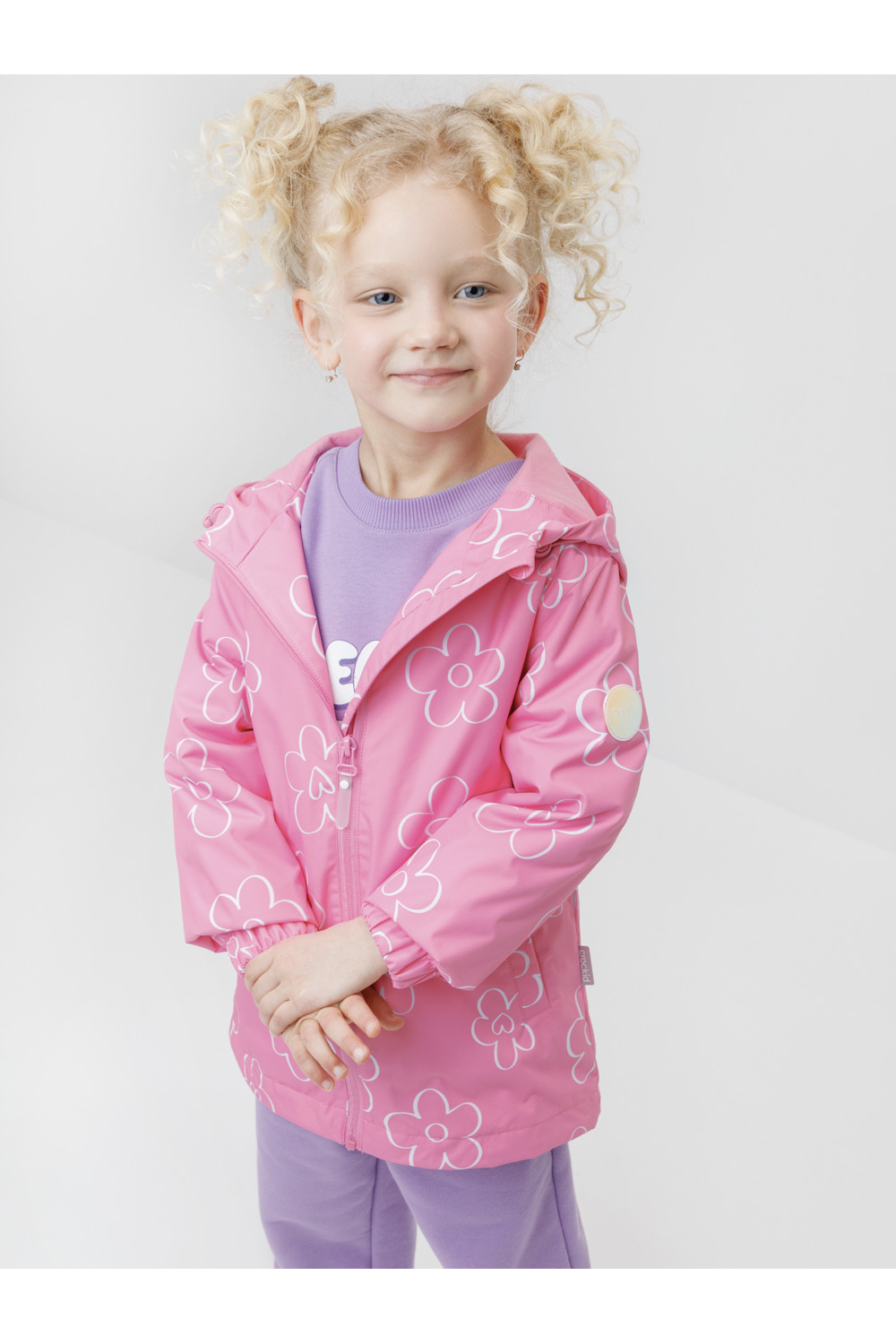 Ветровка для девочки из мембранной ткани с дополнительной тефлоновой обработкой. Верхняя мембранная ткань 1000/1000 с тефлоновым покрытием отталкивает воду и грязь и обладает «дышащими» свойствами. Подкладка выполнена из 100% хлопка. У изделия предусмотрена защита подбородка. Несъёмный капюшон регулируется с помощью эластичного шнура со стопперами. Низ рукавов имеет эластичную резинку для лучшего прилегания. Во всех изделиях верхнего ассортимента для безопасности ребёнка предусмотрены светоотражающие элементы.