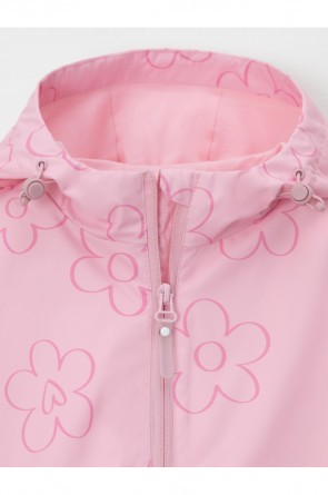 Ветровка для девочки из мембранной ткани с дополнительной тефлоновой обработкой. Верхняя мембранная ткань 1000/1000 с тефлоновым покрытием отталкивает воду и грязь и обладает «дышащими» свойствами. Подкладка выполнена из 100% хлопка. У изделия предусмотрена защита подбородка. Несъёмный капюшон регулируется с помощью эластичного шнура со стопперами. Низ рукавов имеет эластичную резинку для лучшего прилегания. Во всех изделиях верхнего ассортимента для безопасности ребёнка предусмотрены светоотражающие элементы.