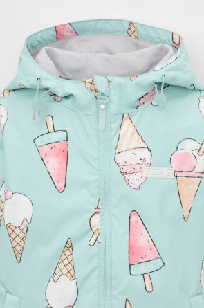 Ветровка для девочки из мембранной ткани с дополнительной тефлоновой обработкой. Верхняя мембранная ткань 1000/1000 с тефлоновым покрытием отталкивает воду и грязь и обладает «дышащими» свойствами. Подкладка выполнена из 100% хлопка. У изделия предусмотрена защита подбородка. Несъемный капюшон регулируется с помощью эластичного шнура со стопперами. Низ рукавов имеет эластичную резинку для лучшего прилегания. Во всех изделиях верхнего ассортимента для безопасности ребенка предусмотрены светоотражающие элементы.