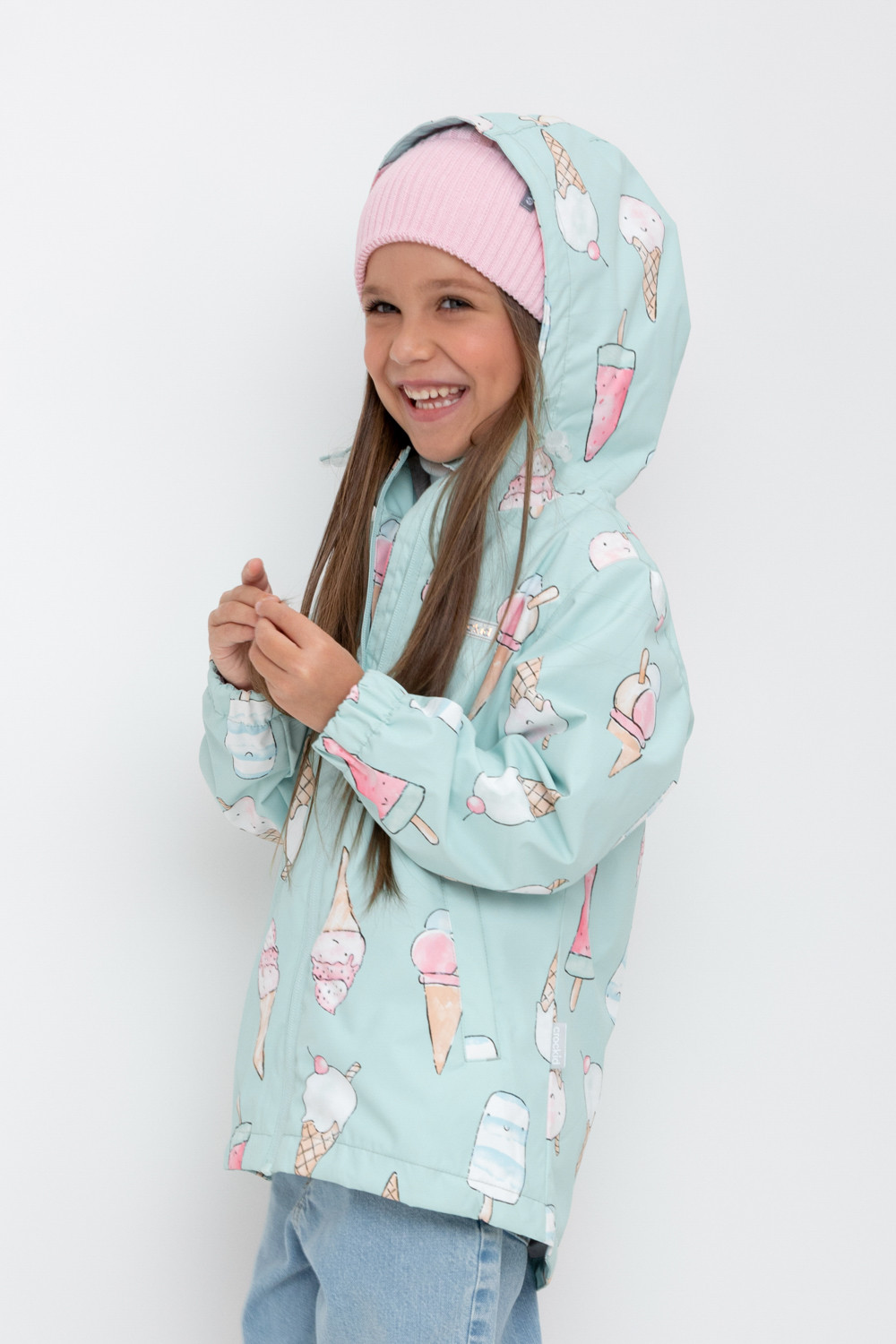 Ветровка для девочки из мембранной ткани с дополнительной тефлоновой обработкой. Верхняя мембранная ткань 1000/1000 с тефлоновым покрытием отталкивает воду и грязь и обладает «дышащими» свойствами. Подкладка выполнена из 100% хлопка. У изделия предусмотрена защита подбородка. Несъемный капюшон регулируется с помощью эластичного шнура со стопперами. Низ рукавов имеет эластичную резинку для лучшего прилегания. Во всех изделиях верхнего ассортимента для безопасности ребенка предусмотрены светоотражающие элементы.