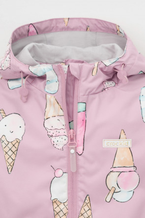 Ветровка для девочки из мембранной ткани с дополнительной тефлоновой обработкой. Верхняя мембранная ткань 1000/1000 с тефлоновым покрытием отталкивает воду и грязь и обладает «дышащими» свойствами. Подкладка выполнена из 100% хлопка. У изделия предусмотрена защита подбородка. Несъемный капюшон регулируется с помощью эластичного шнура со стопперами. Низ рукавов имеет эластичную резинку для лучшего прилегания. Во всех изделиях верхнего ассортимента для безопасности ребенка предусмотрены светоотражающие элементы.