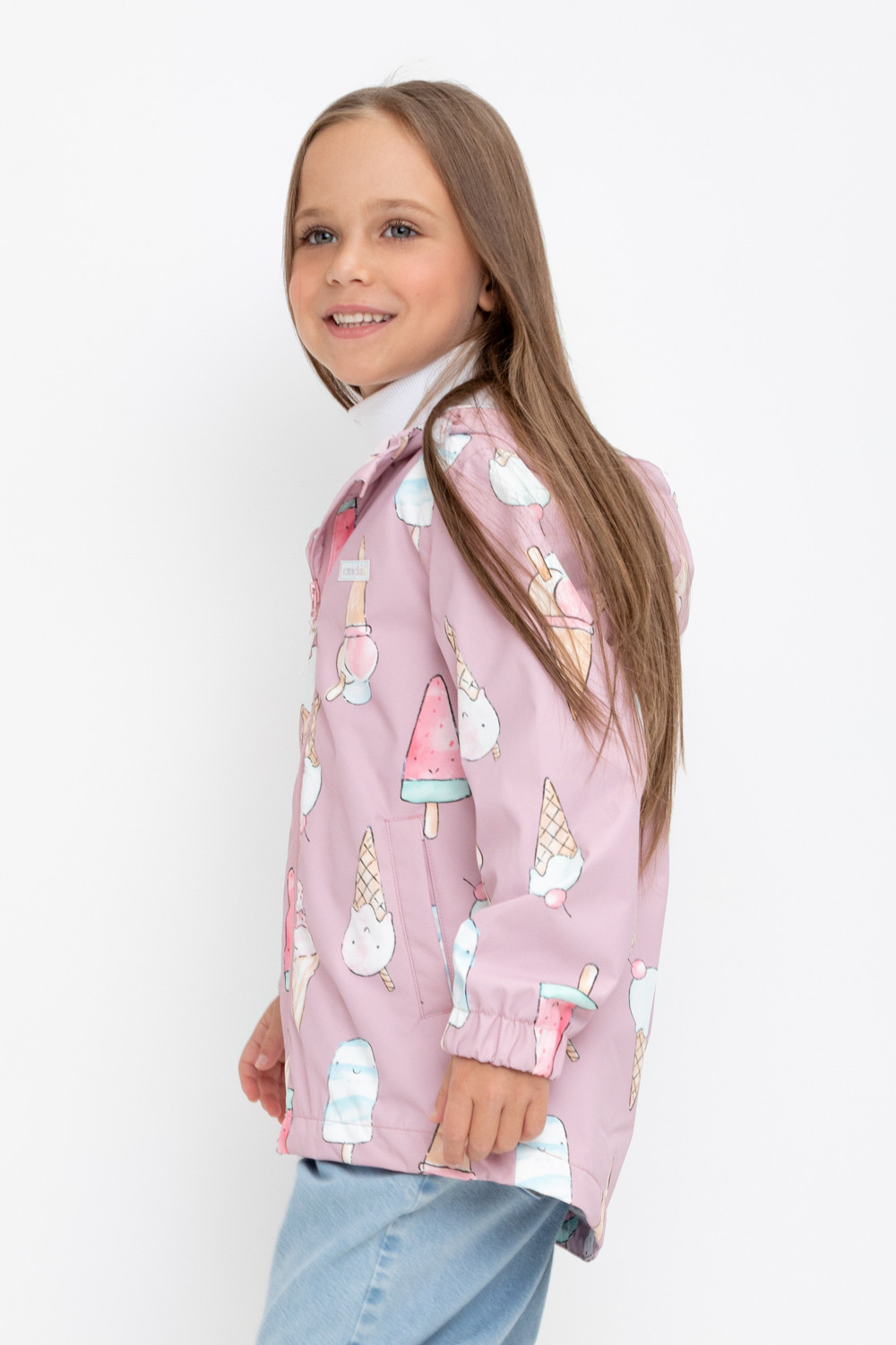Ветровка для девочки из мембранной ткани с дополнительной тефлоновой обработкой. Верхняя мембранная ткань 1000/1000 с тефлоновым покрытием отталкивает воду и грязь и обладает «дышащими» свойствами. Подкладка выполнена из 100% хлопка. У изделия предусмотрена защита подбородка. Несъемный капюшон регулируется с помощью эластичного шнура со стопперами. Низ рукавов имеет эластичную резинку для лучшего прилегания. Во всех изделиях верхнего ассортимента для безопасности ребенка предусмотрены светоотражающие элементы.