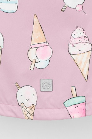 Ветровка для девочки из мембранной ткани с дополнительной тефлоновой обработкой. Верхняя мембранная ткань 1000/1000 с тефлоновым покрытием отталкивает воду и грязь и обладает «дышащими» свойствами. Подкладка выполнена из 100% хлопка. У изделия предусмотрена защита подбородка. Несъемный капюшон регулируется с помощью эластичного шнура со стопперами. Низ рукавов имеет эластичную резинку для лучшего прилегания. Во всех изделиях верхнего ассортимента для безопасности ребенка предусмотрены светоотражающие элементы.