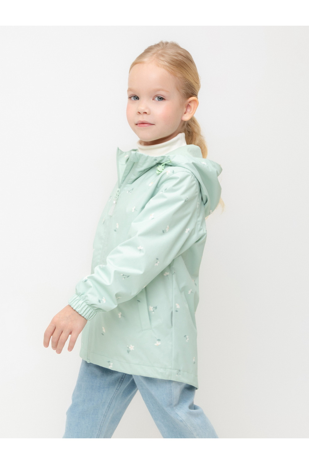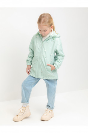Ветровка для девочки из мембранной ткани с дополнительной тефлоновой обработкой. Верхняя мембранная ткань 1000/1000 с тефлоновым покрытием отталкивает воду и грязь и обладает «дышащими» свойствами. Подкладка выполнена из 100% хлопка. У изделия предусмотрена защита подбородка. Несъемный капюшон регулируется с помощью эластичного шнура со стопперами. Низ рукавов имеет эластичную резинку для лучшего прилегания. Во всех изделиях верхнего ассортимента для безопасности ребенка предусмотрены светоотражающие элементы.