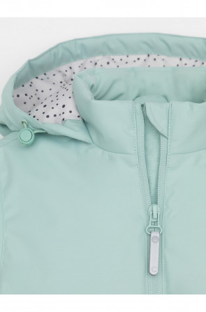 Демисезонная куртка для девочки с утеплителем SEE®: 120 г/м2. Выполнена из мембранной ткани с дополнительной тефлоновой обработкой. Данный вид обработки предохраняет изделие от загрязнения и лучше отводит влагу. Подклад из 100% полиэстера. У изделия предусмотрена защита подбородка. Несъемный капюшон регулируется с помощью эластичной утяжки со стопперами. Низ рукавов и пояс изделия имеют эластичную резинку для лучшего прилегания. По бокам два кармана на молнии. Во всех изделиях верхнего ассортимента для безопасности ребенка предусмотрены светоотражающие элементы.