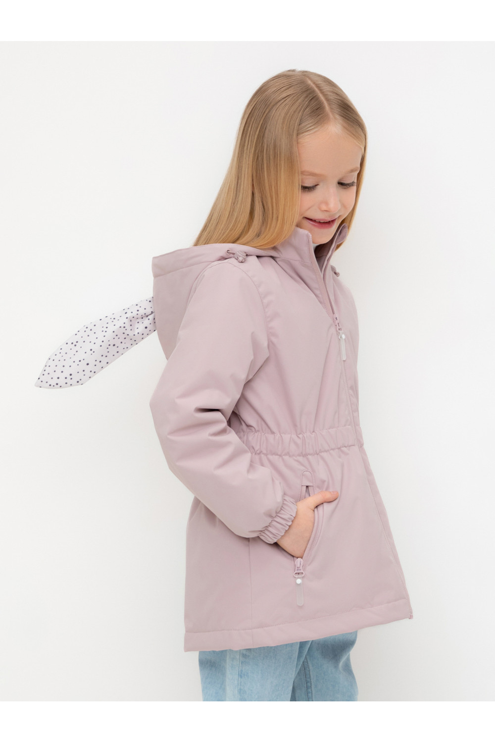 Демисезонная куртка для девочки с утеплителем SEE®: 120 г/м2. Выполнена из мембранной ткани с дополнительной тефлоновой обработкой. Данный вид обработки предохраняет изделие от загрязнения и лучше отводит влагу. Подклад из 100% полиэстера. У изделия предусмотрена защита подбородка. Несъемный капюшон регулируется с помощью эластичной утяжки со стопперами. Низ рукавов и пояс изделия имеют эластичную резинку для лучшего прилегания. По бокам два кармана на молнии. Во всех изделиях верхнего ассортимента для безопасности ребенка предусмотрены светоотражающие элементы.