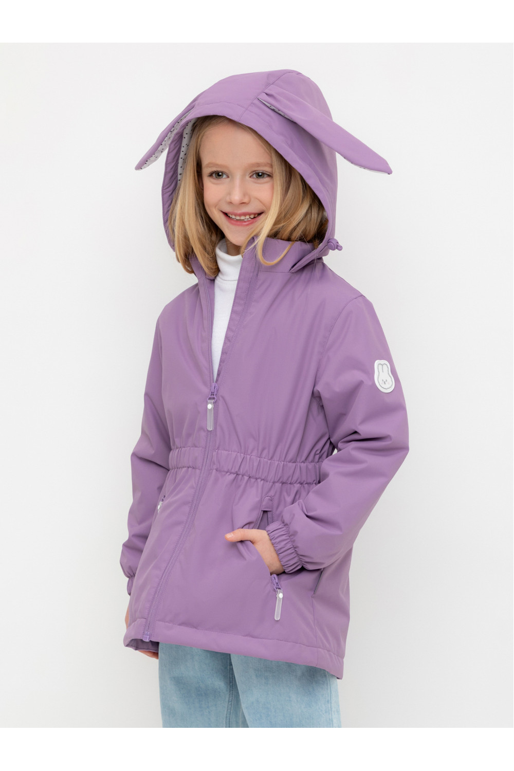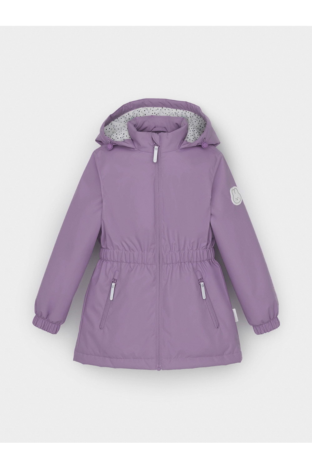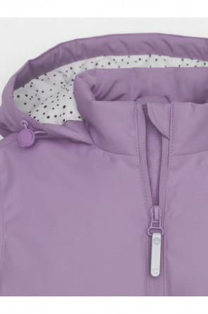 Демисезонная куртка для девочки с утеплителем SEE®: 120 г/м2. Выполнена из мембранной ткани с дополнительной тефлоновой обработкой. Данный вид обработки предохраняет изделие от загрязнения и лучше отводит влагу. Подклад из 100% полиэстера. У изделия предусмотрена защита подбородка. Несъемный капюшон регулируется с помощью эластичной утяжки со стопперами. Низ рукавов и пояс изделия имеют эластичную резинку для лучшего прилегания. По бокам два кармана на молнии. Во всех изделиях верхнего ассортимента для безопасности ребенка предусмотрены светоотражающие элементы.