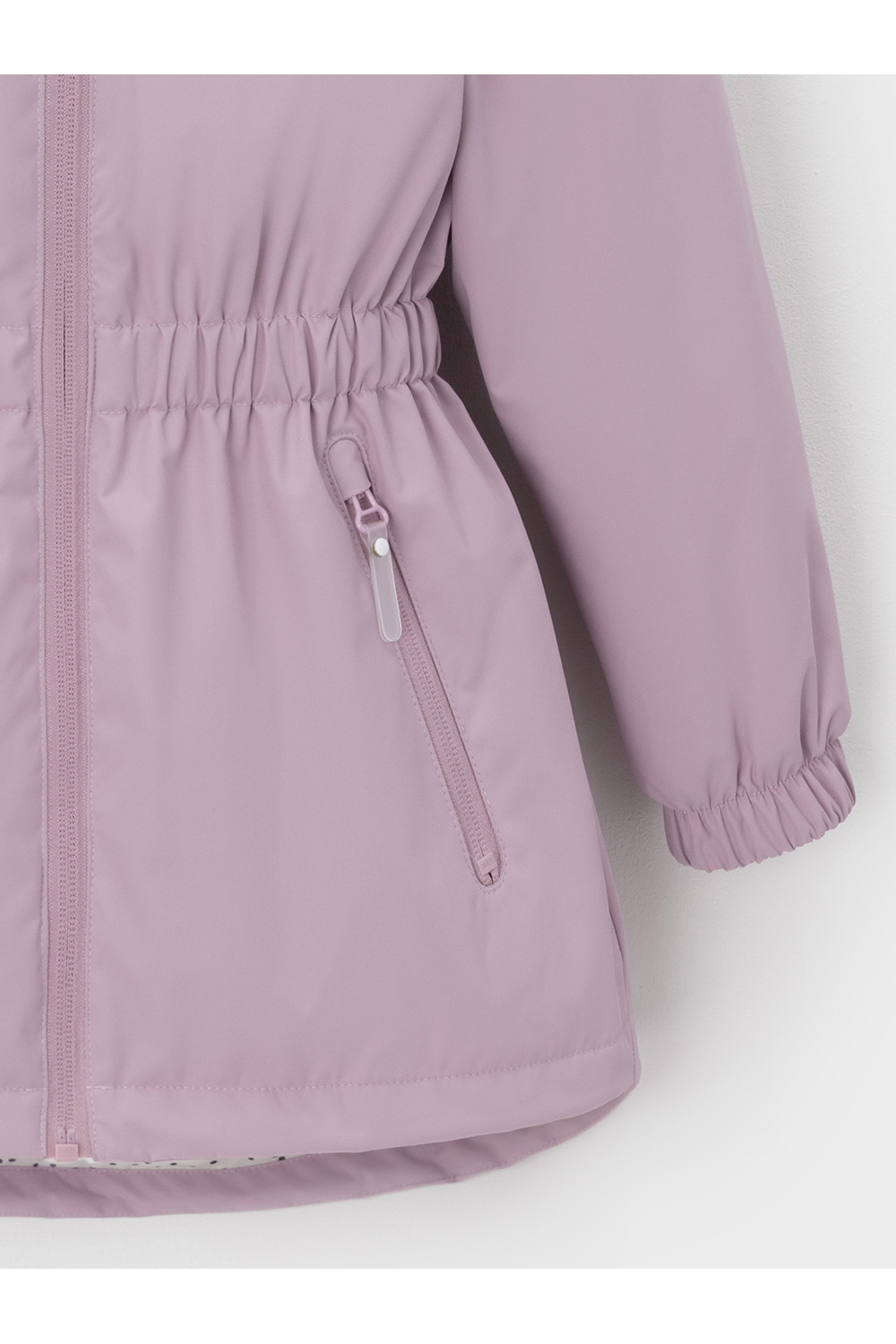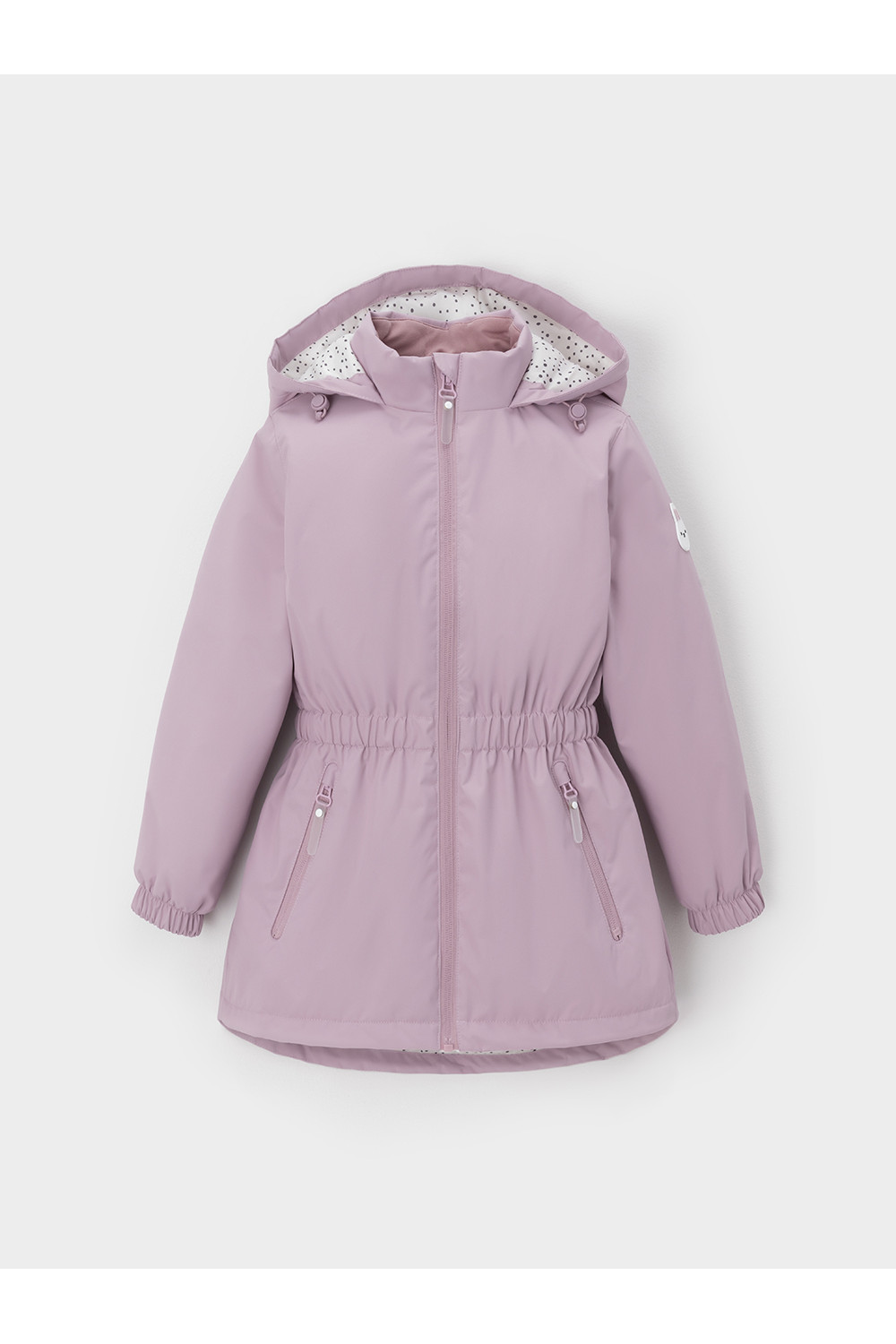 Демисезонная куртка для девочки с утеплителем Fellex®: 120 г/м2. Выполнена из мембранной ткани с тефлоновой обработкой. Данный вид обработки предохраняет изделие от загрязнения и хорошо отталкивает влагу. Подклад из трикотажа в размере 92-98 и из полиэстера в размерах от 98-104 до 128-134. Куртка застёгивается на молнию, предусмотрена защита подбородка. Несъёмный капюшон имеет эластичную утяжку со стопперами. Низ рукавов на эластичной резинке для лучшего прилегания. Утяжка по талии обеспечивает идеальную посадку по фигуре. По бокам два кармана. Во всех изделиях верхнего ассортимента для безопасности ребёнка предусмотрены светоотражающие элементы.