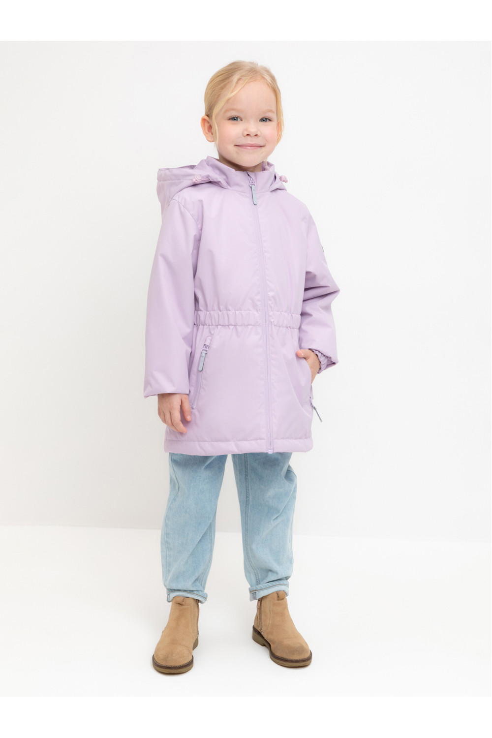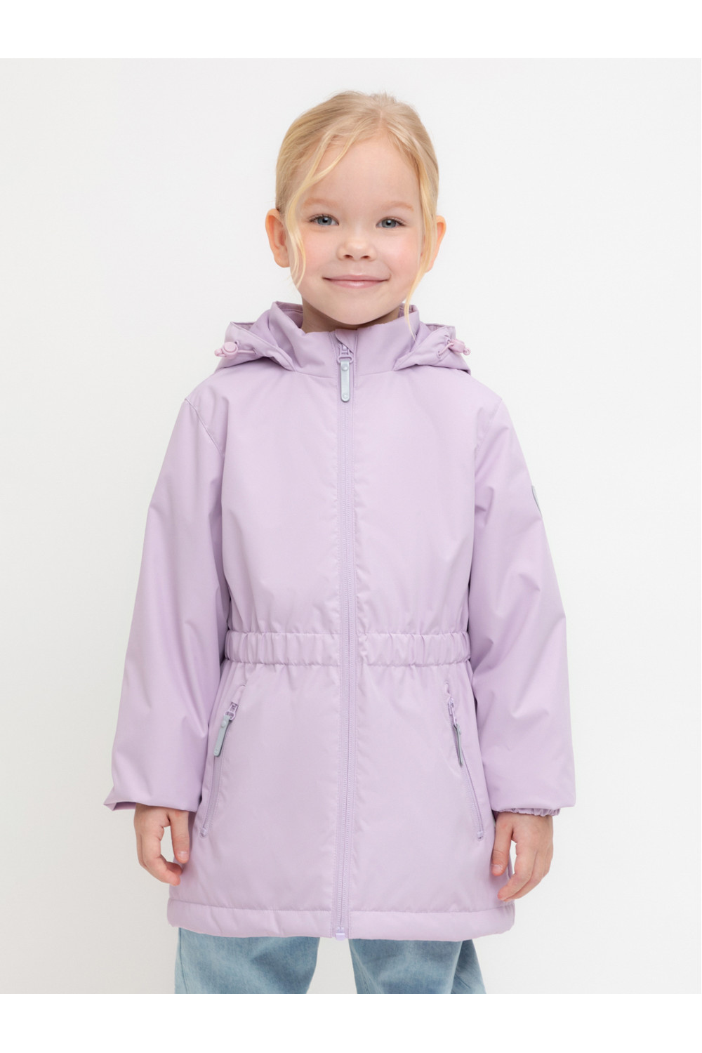 Демисезонная куртка для девочки с утеплителем SEE®: 120 г/м2. Выполнена из мембранной ткани с дополнительной тефлоновой обработкой. Данный вид обработки предохраняет изделие от загрязнения и лучше отводит влагу. Подклад из 100% полиэстера. У изделия предусмотрена защита подбородка. Несъемный капюшон регулируется с помощью эластичной утяжки со стопперами. Низ рукавов и пояс изделия имеют эластичную резинку для лучшего прилегания. По бокам два кармана на молнии. Во всех изделиях верхнего ассортимента для безопасности ребенка предусмотрены светоотражающие элементы.