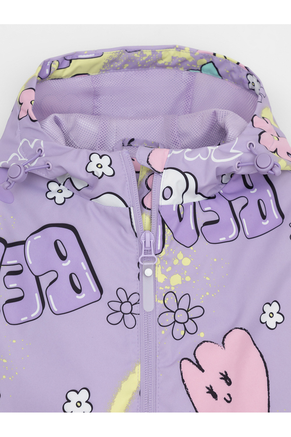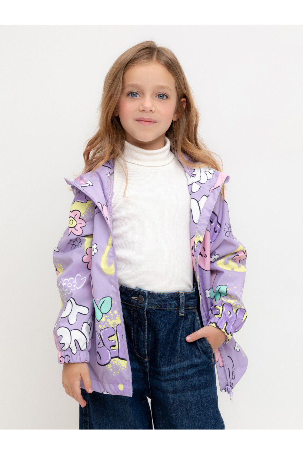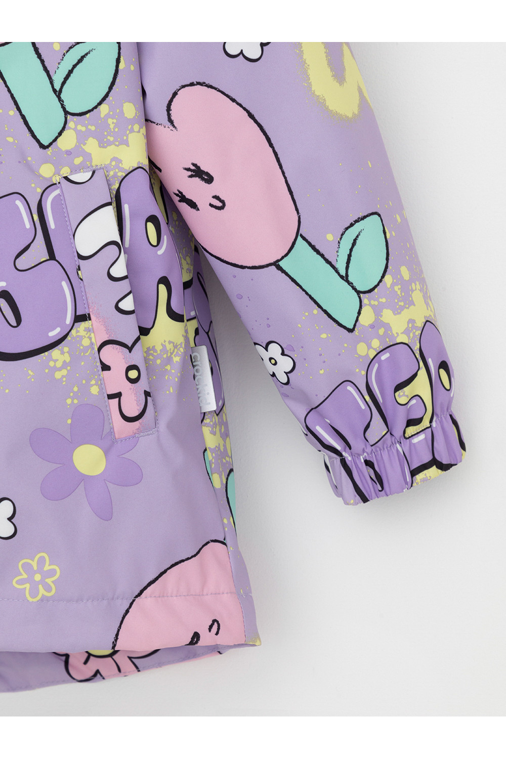 Ветровка для девочки из мембранной ткани с дополнительной тефлоновой обработкой. Верхняя мембранная ткань 1000/1000 с тефлоновым покрытием отталкивает воду и грязь и обладает «дышащими» свойствами. Подкладка выполнена из сетки, 100% полиэстер. У изделия предусмотрена защита подбородка. Несъемный капюшон регулируется с помощью эластичного шнура со стопперами. Низ рукавов имеет эластичную резинку для лучшего прилегания. Низ изделия регулируется эластичной утяжкой со стопперам. Во всех изделиях верхнего ассортимента для безопасности ребенка предусмотрены светоотражающие элементы.