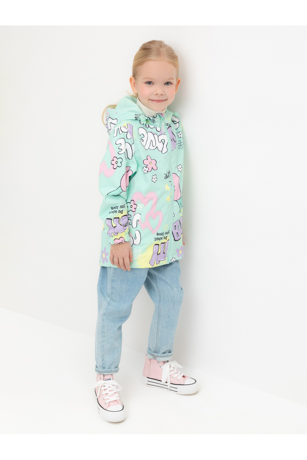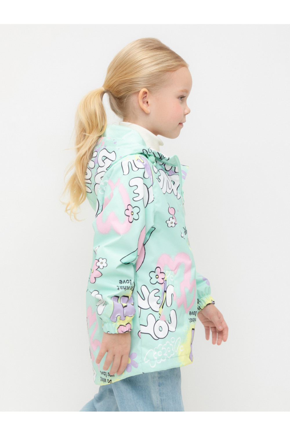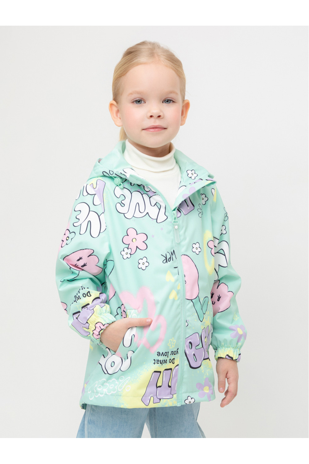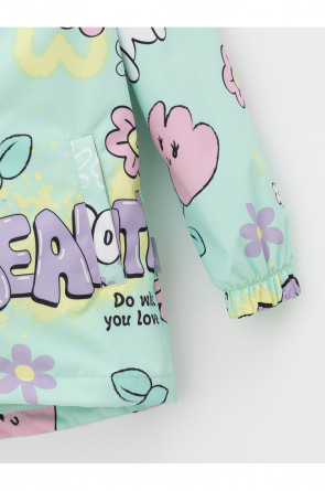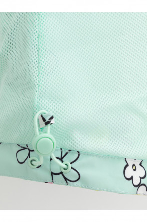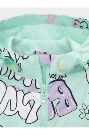 Ветровка для девочки из мембранной ткани с дополнительной тефлоновой обработкой. Верхняя мембранная ткань 1000/1000 с тефлоновым покрытием отталкивает воду и грязь и обладает «дышащими» свойствами. Подкладка выполнена из сетки, 100% полиэстер. У изделия предусмотрена защита подбородка. Несъемный капюшон регулируется с помощью эластичного шнура со стопперами. Низ рукавов имеет эластичную резинку для лучшего прилегания. Низ изделия регулируется эластичной утяжкой со стопперам. Во всех изделиях верхнего ассортимента для безопасности ребенка предусмотрены светоотражающие элементы.