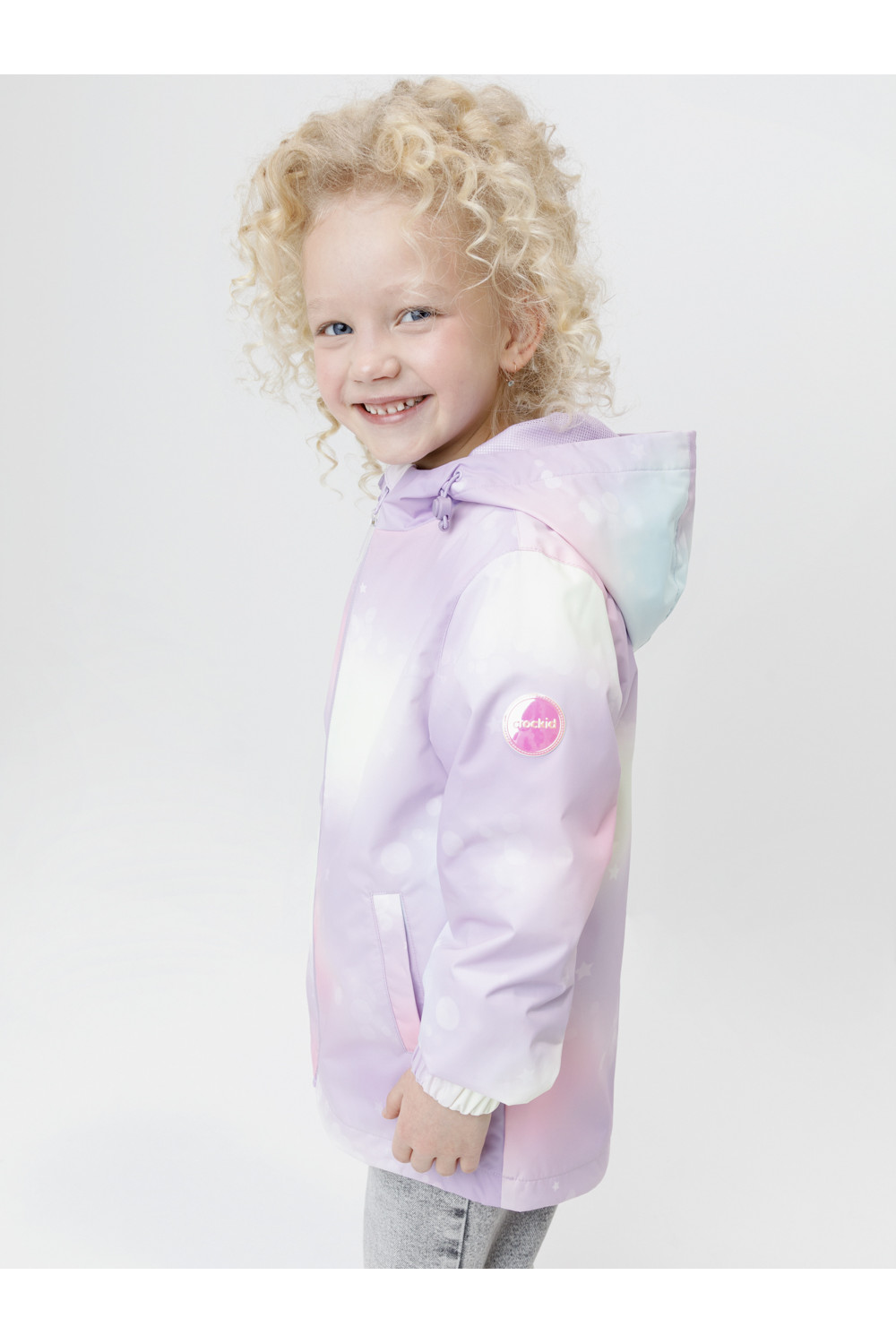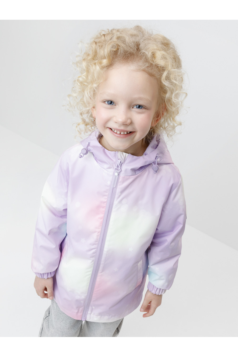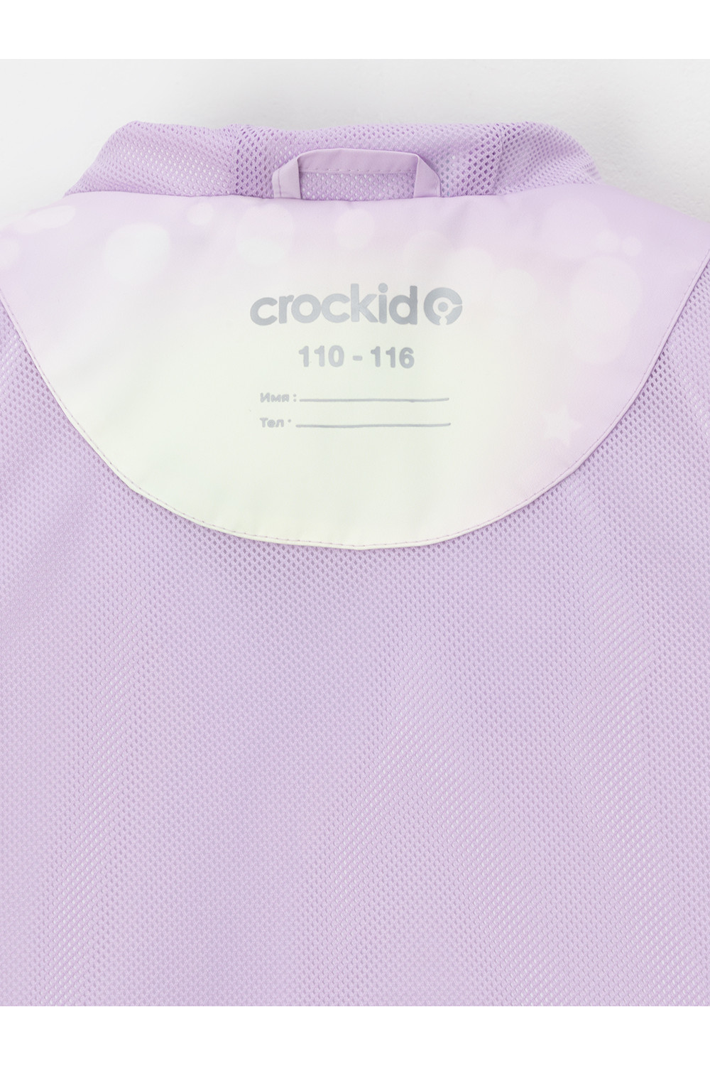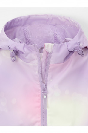 Ветровка для девочки из мембранной ткани с дополнительной тефлоновой обработкой. Верхняя мембранная ткань 1000/1000 с тефлоновым покрытием отталкивает воду и грязь и обладает «дышащими» свойствами. Подкладка выполнена из сетки. У изделия предусмотрена защита подбородка. Несъёмный капюшон регулируется с помощью эластичного шнура со стопперами. Низ рукавов имеет эластичную резинку для лучшего прилегания. Во всех изделиях верхнего ассортимента для безопасности ребёнка предусмотрены светоотражающие элементы.