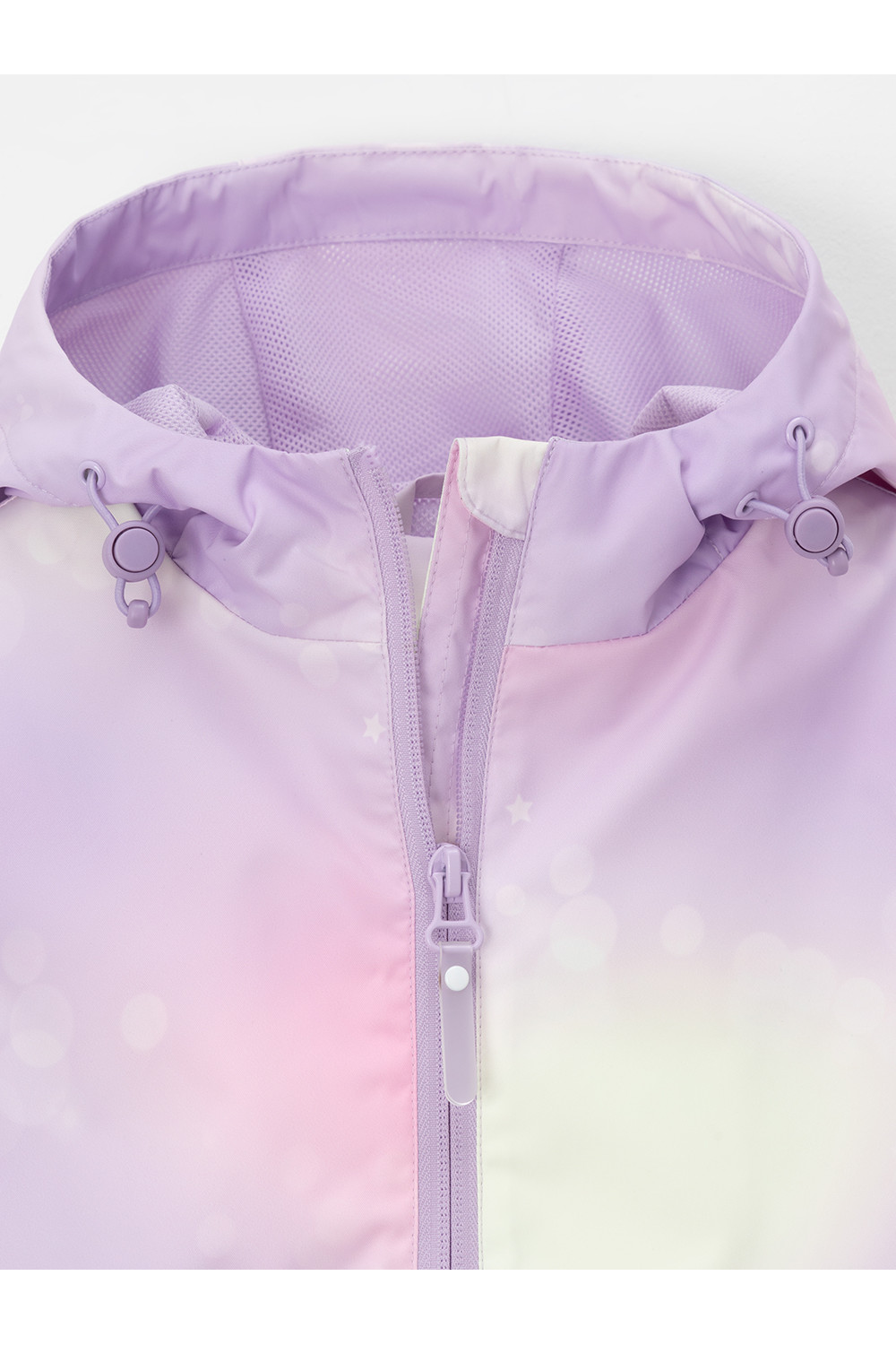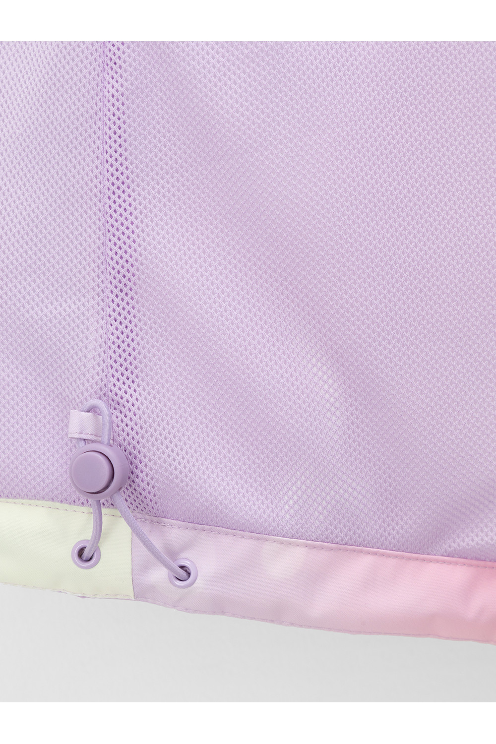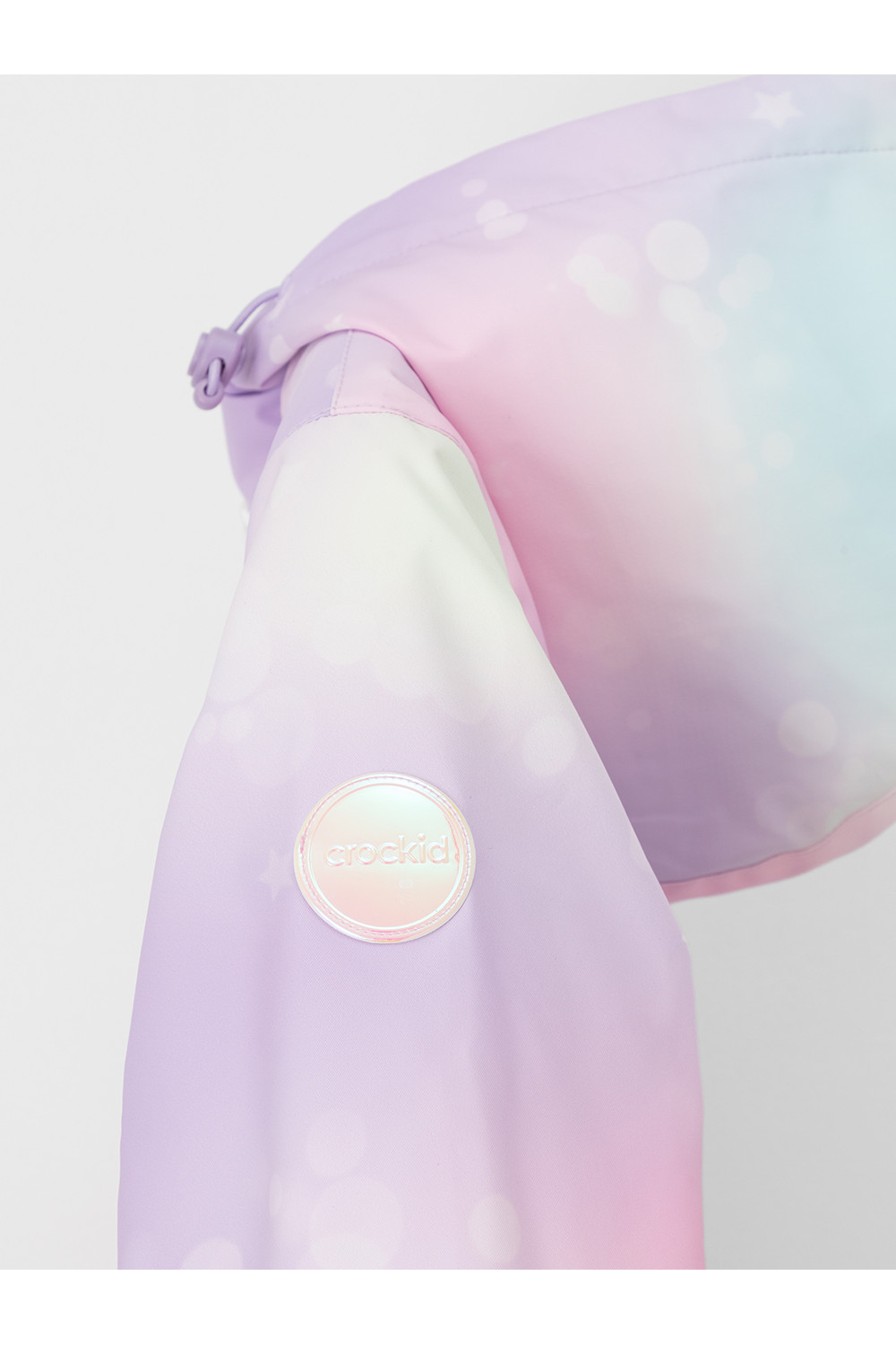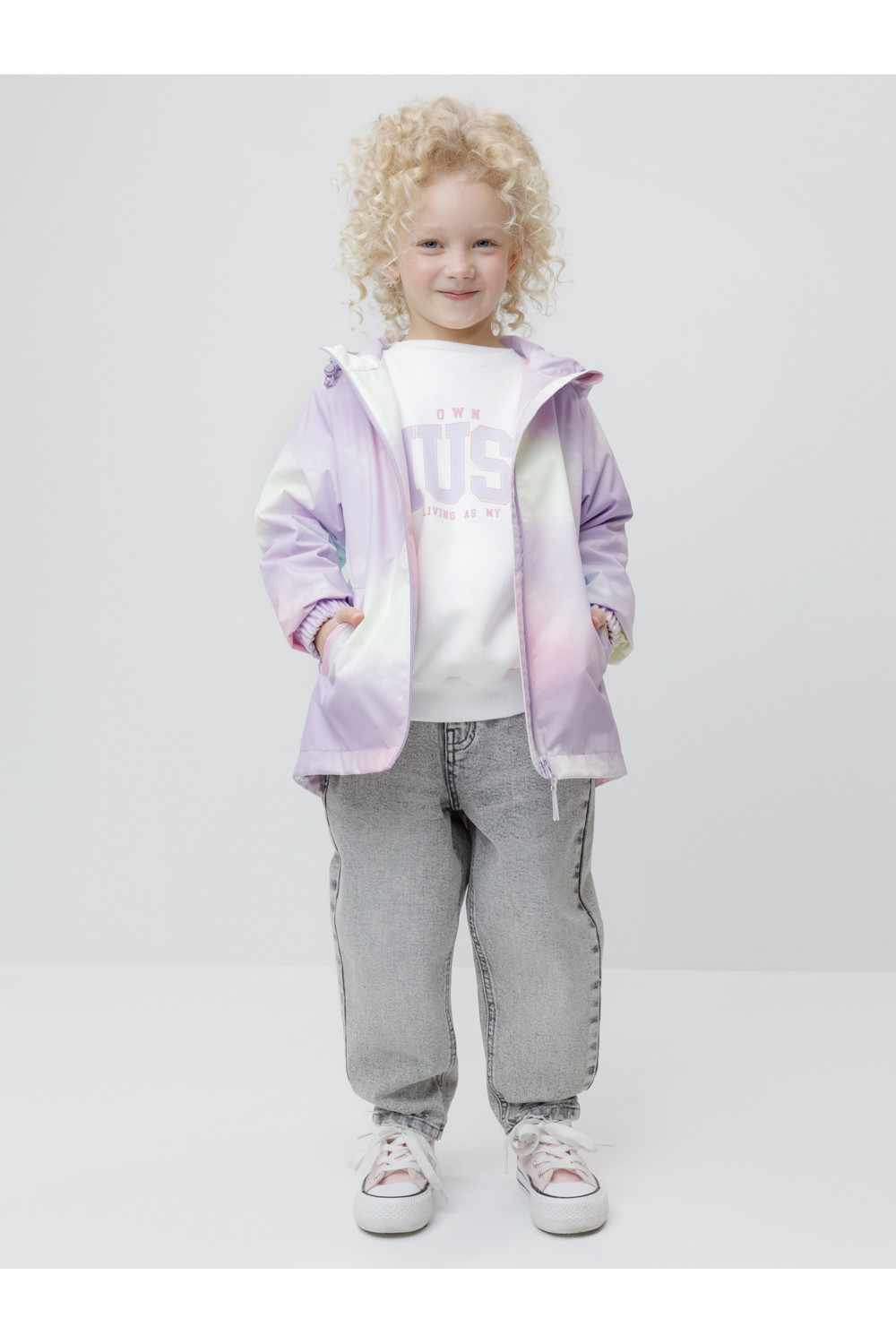 Ветровка для девочки из мембранной ткани с дополнительной тефлоновой обработкой. Верхняя мембранная ткань 1000/1000 с тефлоновым покрытием отталкивает воду и грязь и обладает «дышащими» свойствами. Подкладка выполнена из сетки. У изделия предусмотрена защита подбородка. Несъёмный капюшон регулируется с помощью эластичного шнура со стопперами. Низ рукавов имеет эластичную резинку для лучшего прилегания. Во всех изделиях верхнего ассортимента для безопасности ребёнка предусмотрены светоотражающие элементы.