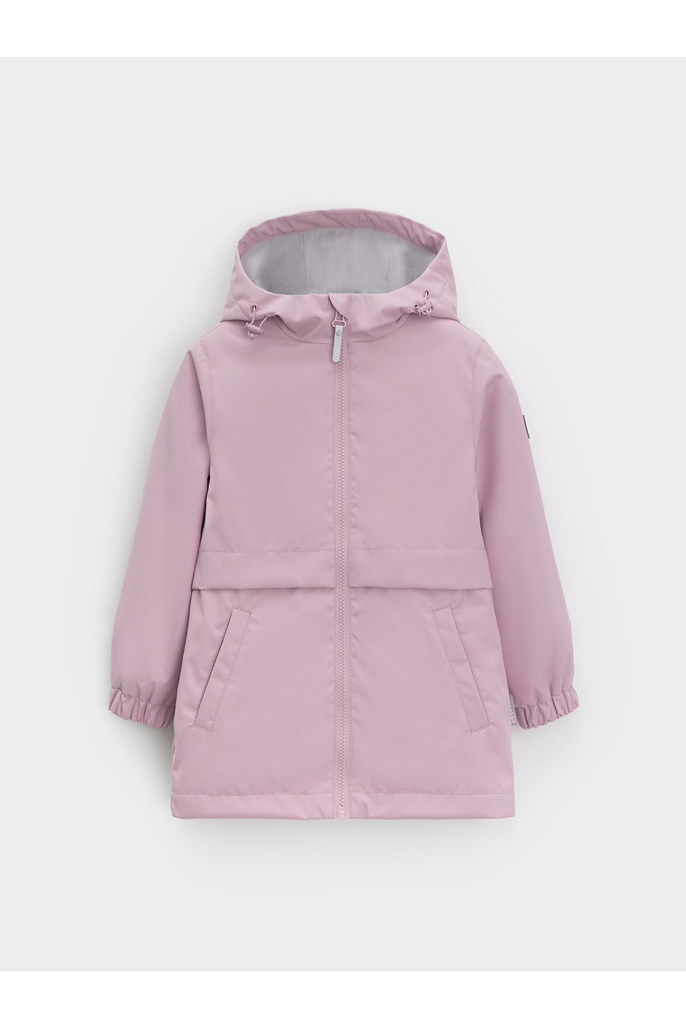 Ветровка для девочки из мембранной ткани с дополнительной тефлоновой обработкой. Верхняя мембранная ткань 1000/1000 с тефлоновым покрытием отталкивает воду и грязь и обладает «дышащими» свойствами. Подкладка выполнена из флиса. У изделия предусмотрена защита подбородка. Несъёмный капюшон регулируется с помощью эластичного шнура со стопперами. Низ рукавов имеет эластичную резинку для лучшего прилегания. Во всех изделиях верхнего ассортимента для безопасности ребёнка предусмотрены светоотражающие элементы.
