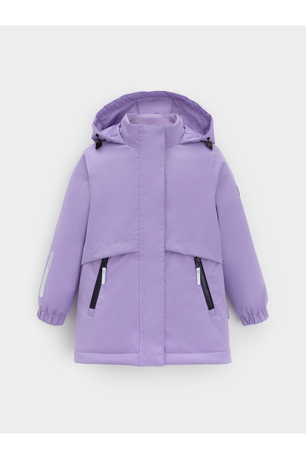 Демисезонная куртка для девочки с утеплителем Fellex®: 120 г/м2. Выполнена из мембранной ткани с тефлоновой обработкой. Данный вид обработки предохраняет изделие от загрязнения и хорошо отталкивает влагу. Подклад из 100% полиэстера. Куртка застёгивается на молнию и дополнительно защищена внешней ветрозащитной планкой на липучках. Предусмотрена защита подбородка. Несъёмный капюшон имеет эластичную утяжку со стопперами. Низ рукавов на эластичной резинке для лучшего прилегания. По бокам два кармана. Во всех изделиях верхнего ассортимента для безопасности ребёнка предусмотрены светоотражающие элементы.