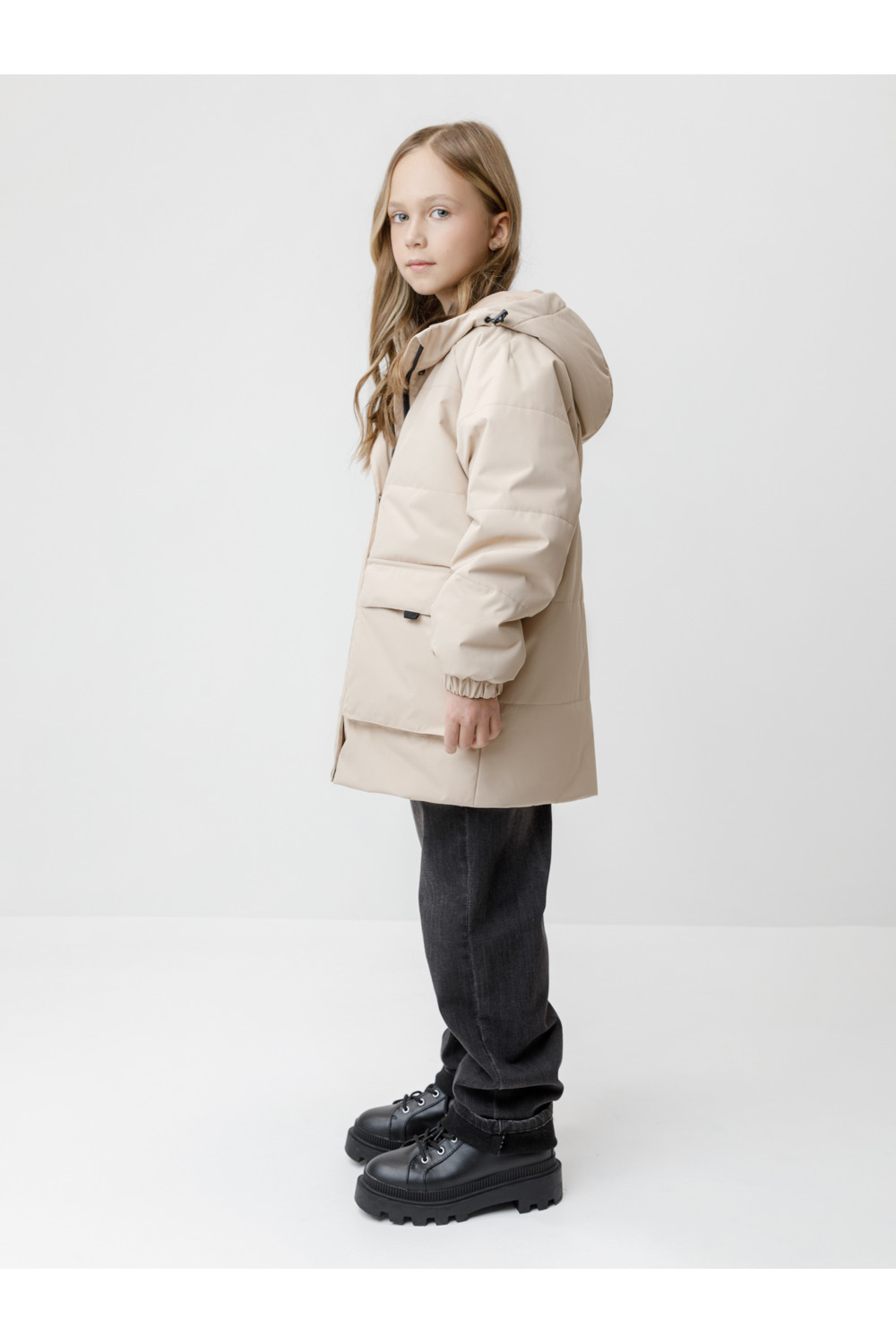 Демисезонная куртка для девочки с утеплителем Fellex®: 120 г/м2. Выполнена из мембранной ткани с тефлоновой обработкой. Данный вид обработки предохраняет изделие от загрязнения и хорошо отталкивает влагу. Подклад выполнен из 100% полиэстера. Куртка застёгивается на молнию и дополнительно защищена внешней ветрозащитной планкой на липучках. Предусмотрена защита подбородка. Несъёмный капюшон имеет эластичную утяжку со стопперами. Низ рукавов на эластичной резинке для лучшего прилегания. По бокам два кармана на клапанах. Во всех изделиях верхнего ассортимента для безопасности ребёнка предусмотрены светоотражающие элементы.