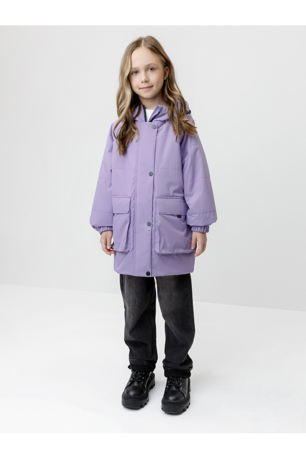 Демисезонная куртка для девочки с утеплителем Fellex®: 120 г/м2. Выполнена из мембранной ткани с тефлоновой обработкой. Данный вид обработки предохраняет изделие от загрязнения и хорошо отталкивает влагу. Подклад выполнен из 100% полиэстера. Куртка застёгивается на молнию и дополнительно защищена внешней ветрозащитной планкой на липучках. Предусмотрена защита подбородка. Несъёмный капюшон имеет эластичную утяжку со стопперами. Низ рукавов на эластичной резинке для лучшего прилегания. По бокам два кармана на клапанах. Во всех изделиях верхнего ассортимента для безопасности ребёнка предусмотрены светоотражающие элементы.