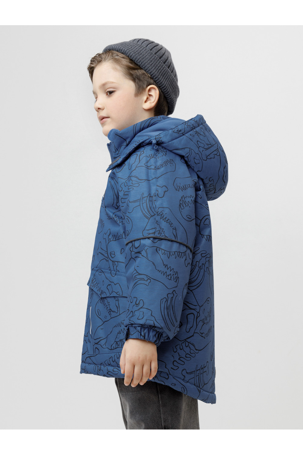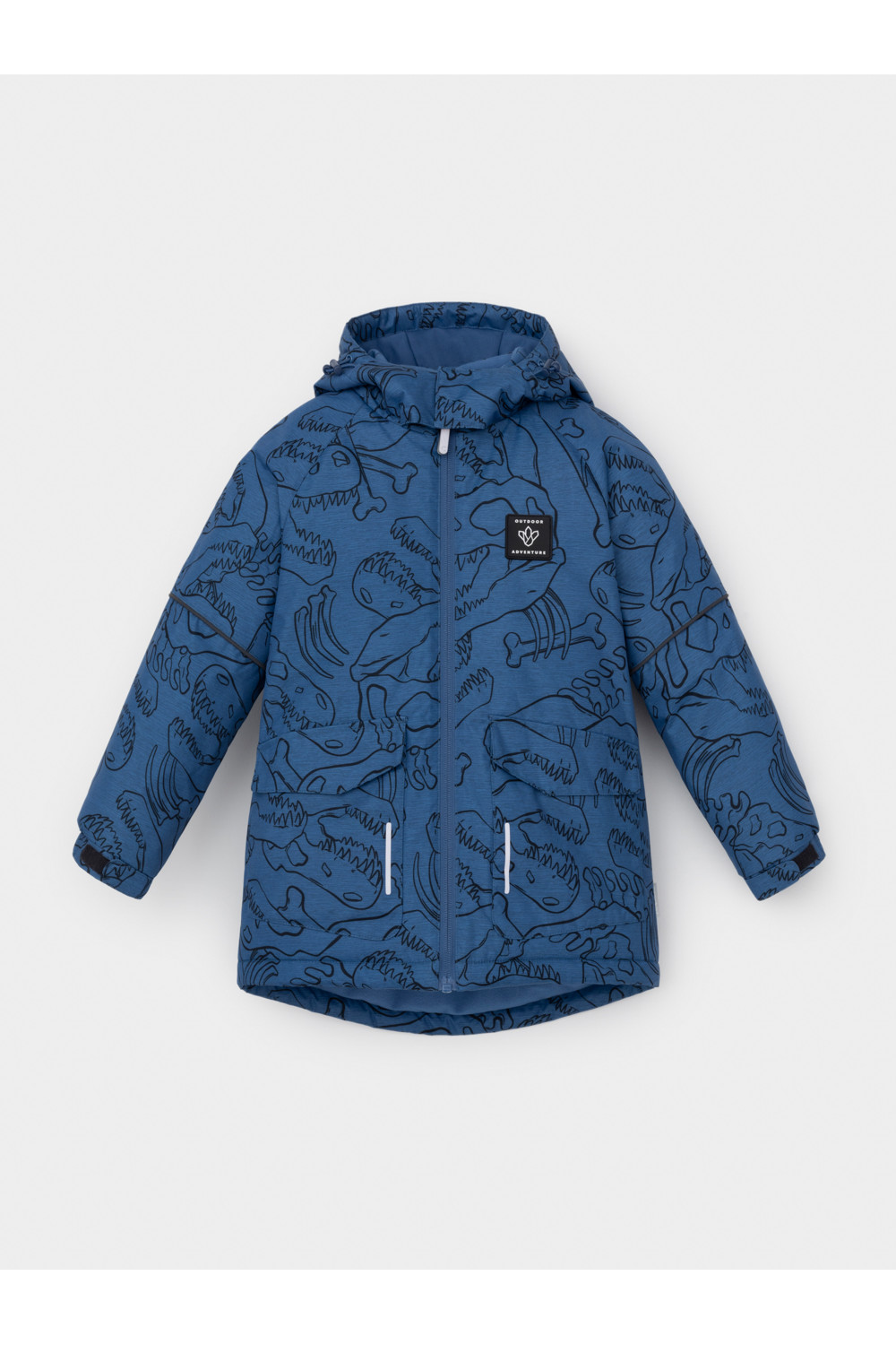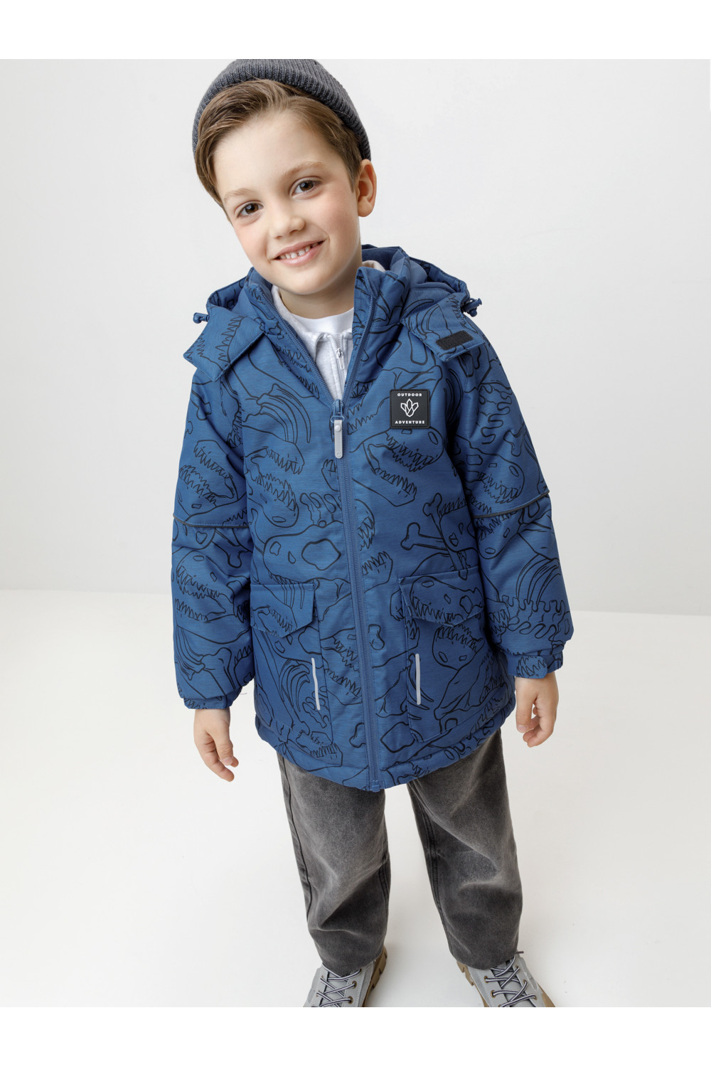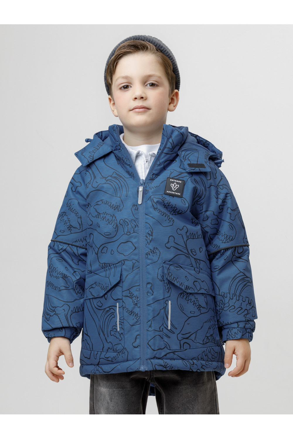 Зимняя куртка для мальчика с утеплителем Fellex®: 250 г/м2. Выполнена из мембранной ткани с дополнительной тефлоновой обработкой, которая предохраняет изделие от загрязнений и отталкивает влагу. Подклад выполнен из 100% полиэстера Tricot. Куртка застёгивается на молнию, предусмотрена защита подбородка. Несъёмный капюшон имеет эластичную утяжку со стопперами. На рукавах эластичные манжеты, которые регулируются по ширине при помощи липучек. По бокам два накладных кармана с клапанами на магнитных кнопках. По низу куртки эластичная утяжка со стопперами. Во всех изделиях верхнего ассортимента для безопасности ребёнка предусмотрены светоотражающие элементы.