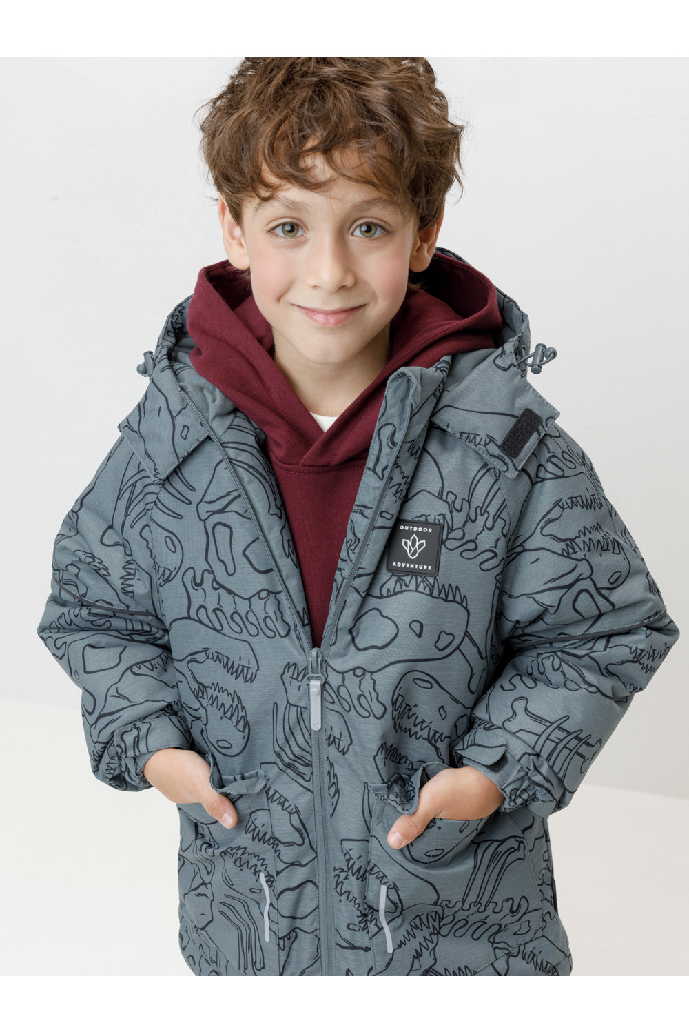 Зимняя куртка для мальчика с утеплителем Fellex®: 250 г/м2. Выполнена из мембранной ткани с дополнительной тефлоновой обработкой, которая предохраняет изделие от загрязнений и отталкивает влагу. Подклад выполнен из 100% полиэстера Tricot. Куртка застёгивается на молнию, предусмотрена защита подбородка. Несъёмный капюшон имеет эластичную утяжку со стопперами. На рукавах эластичные манжеты, которые регулируются по ширине при помощи липучек. По бокам два накладных кармана с клапанами на магнитных кнопках. По низу куртки эластичная утяжка со стопперами. Во всех изделиях верхнего ассортимента для безопасности ребёнка предусмотрены светоотражающие элементы.