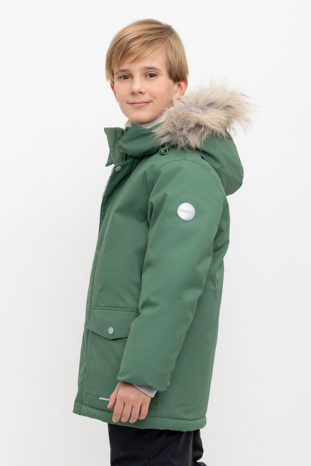 • Съемный капюшон на липучках с отстегивающимся искусственным мехом