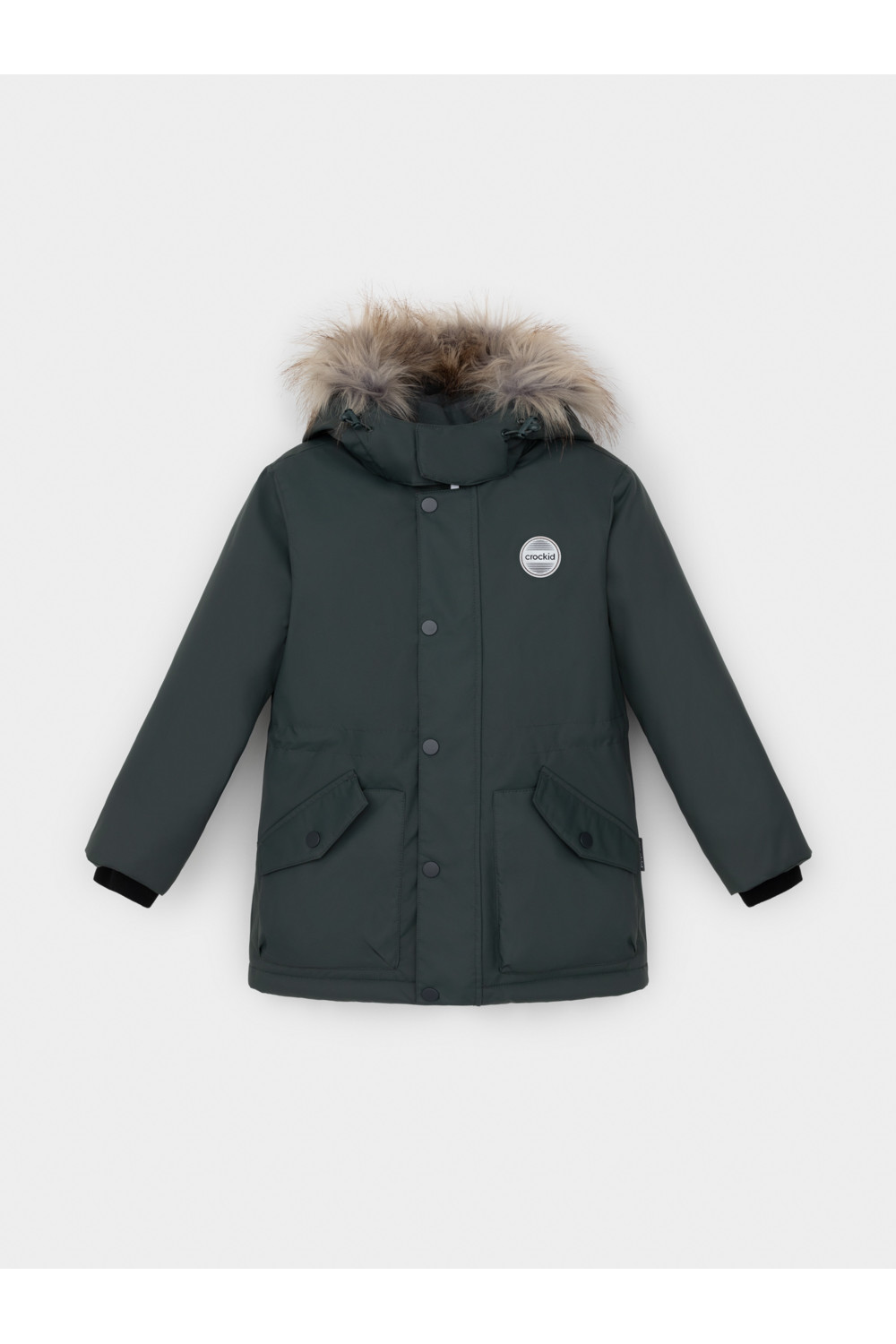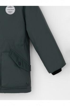 Зимняя парка для мальчика с утеплителем SEE®: 250 г/м2. Выполнена из мембранной ткани с дополнительной тефлоновой обработкой, которая предохраняет изделие от загрязнений и отталкивает влагу. Подклад выполнен из 100% полиэстера Tricot. Парка застёгивается на молнию и внешнюю планку с металлическими кнопками, предусмотрена защита подбородка. Съёмный капюшон на кнопках и липучках имеет эластичную утяжку со стопперами и отстёгивающуюся опушку из искусственного меха. На рукавах внутренние эластичные манжеты. Два накладных кармана с клапанами по бокам. По талии эластичная утяжка со стопперами. Во всех изделиях верхнего ассортимента для безопасности ребёнка предусмотрены светоотражающие элементы.