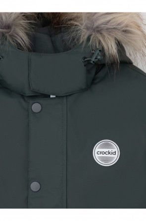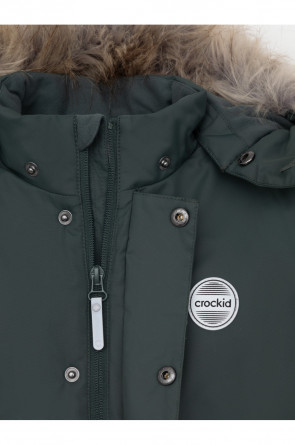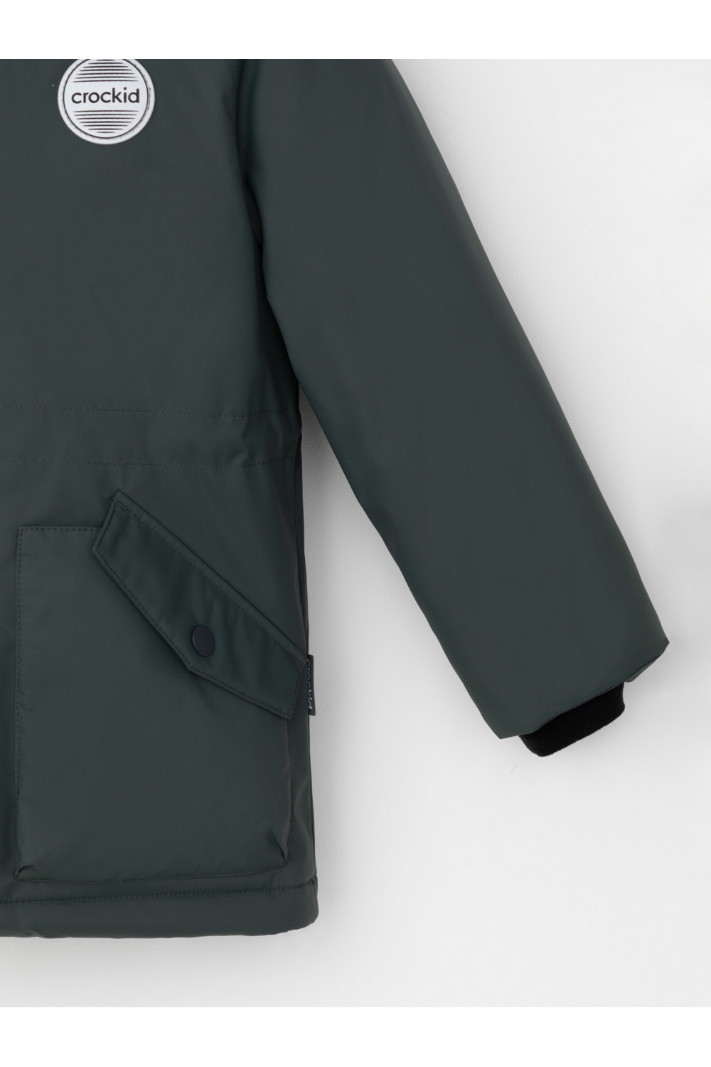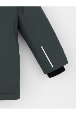Зимняя парка для мальчика с утеплителем SEE®: 250 г/м2. Выполнена из мембранной ткани с дополнительной тефлоновой обработкой, которая предохраняет изделие от загрязнений и отталкивает влагу. Подклад выполнен из 100% полиэстера Tricot. Парка застёгивается на молнию и внешнюю планку с металлическими кнопками, предусмотрена защита подбородка. Съёмный капюшон на кнопках и липучках имеет эластичную утяжку со стопперами и отстёгивающуюся опушку из искусственного меха. На рукавах внутренние эластичные манжеты. Два накладных кармана с клапанами по бокам. По талии эластичная утяжка со стопперами. Во всех изделиях верхнего ассортимента для безопасности ребёнка предусмотрены светоотражающие элементы.