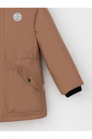Зимняя парка для мальчика с утеплителем SEE®: 250 г/м2. Выполнена из мембранной ткани с дополнительной тефлоновой обработкой, которая предохраняет изделие от загрязнений и отталкивает влагу. Подклад выполнен из 100% полиэстера Tricot. Парка застёгивается на молнию и внешнюю планку с металлическими кнопками, предусмотрена защита подбородка. Съёмный капюшон на кнопках и липучках имеет эластичную утяжку со стопперами и отстёгивающуюся опушку из искусственного меха. На рукавах внутренние эластичные манжеты. Два накладных кармана с клапанами по бокам. По талии эластичная утяжка со стопперами. Во всех изделиях верхнего ассортимента для безопасности ребёнка предусмотрены светоотражающие элементы.