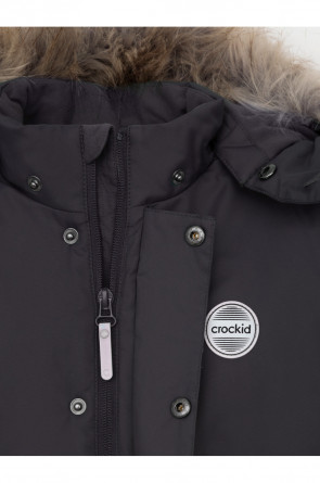 Зимняя парка для мальчика с утеплителем SEE®: 250 г/м2. Выполнена из мембранной ткани с дополнительной тефлоновой обработкой, которая предохраняет изделие от загрязнений и отталкивает влагу. Подклад выполнен из 100% полиэстера Tricot. Парка застёгивается на молнию и внешнюю планку с металлическими кнопками, предусмотрена защита подбородка. Съёмный капюшон на кнопках и липучках имеет эластичную утяжку со стопперами и отстёгивающуюся опушку из искусственного меха. На рукавах внутренние эластичные манжеты. Два накладных кармана с клапанами по бокам. По талии эластичная утяжка со стопперами. Во всех изделиях верхнего ассортимента для безопасности ребёнка предусмотрены светоотражающие элементы.