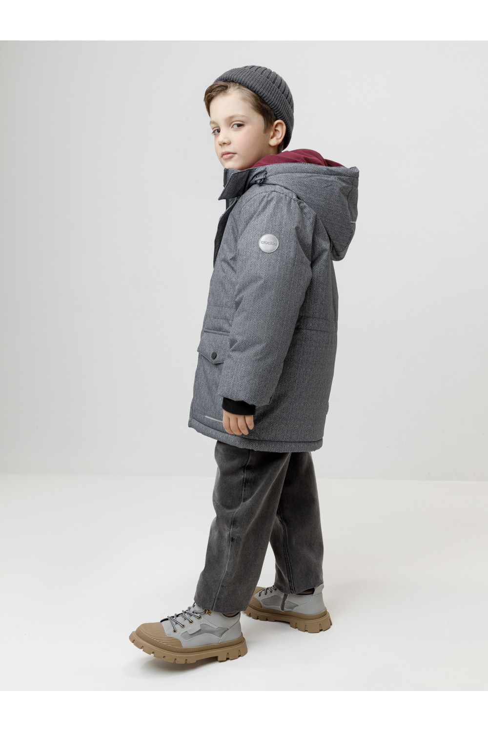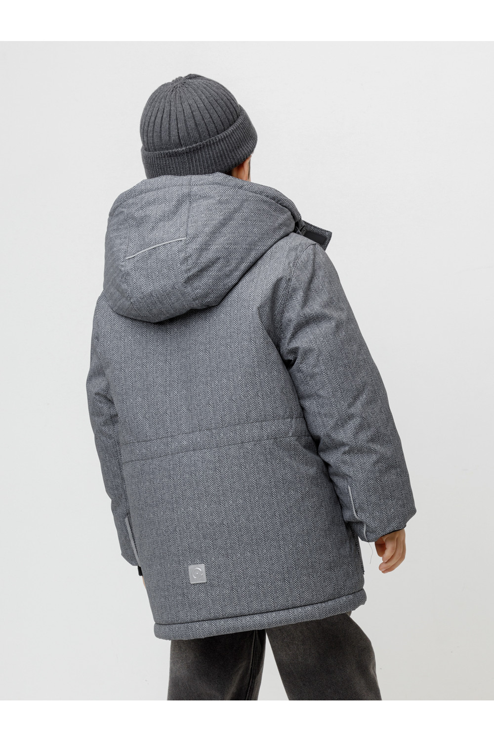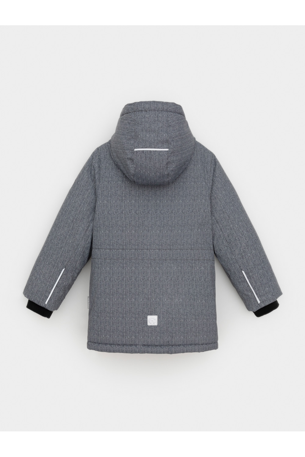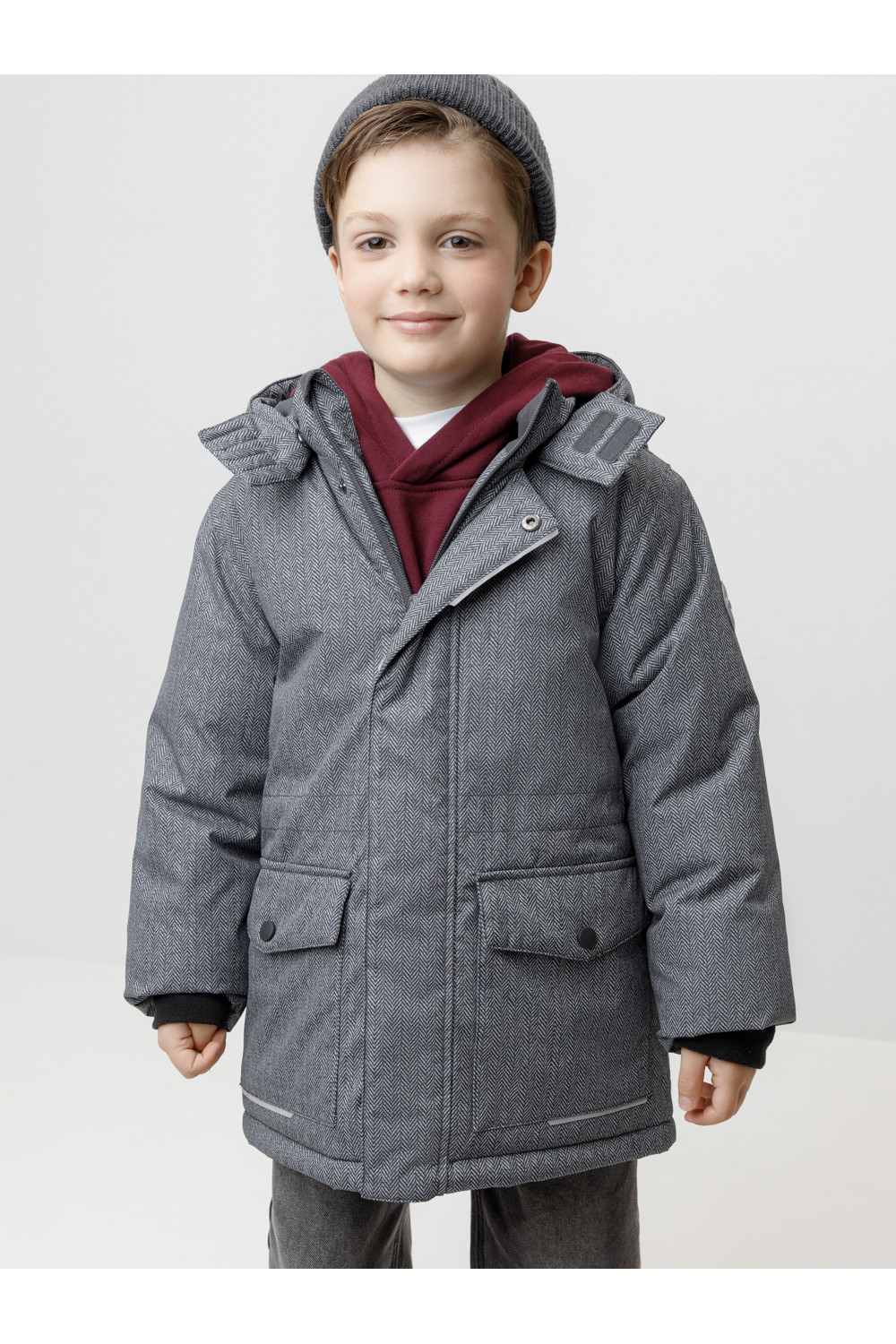 Зимняя куртка для мальчика с утеплителем SEE®: 300 г/м2. Выполнена из мембранной ткани с дополнительной тефлоновой обработкой, которая предохраняет изделие от загрязнений и отталкивает влагу. Подклад выполнен из 100% полиэстера Tricot. Куртка застёгивается на молнию и внешнюю планку с магнитными кнопками, предусмотрена защита подбородка. Съёмный капюшон на кнопках и липучках имеет эластичную утяжку со стопперами. На рукавах внутренние эластичные манжеты. Два накладных кармана с клапанами по бокам. По талии эластичная утяжка со стопперами. Во всех изделиях верхнего ассортимента для безопасности ребёнка предусмотрены светоотражающие элементы.