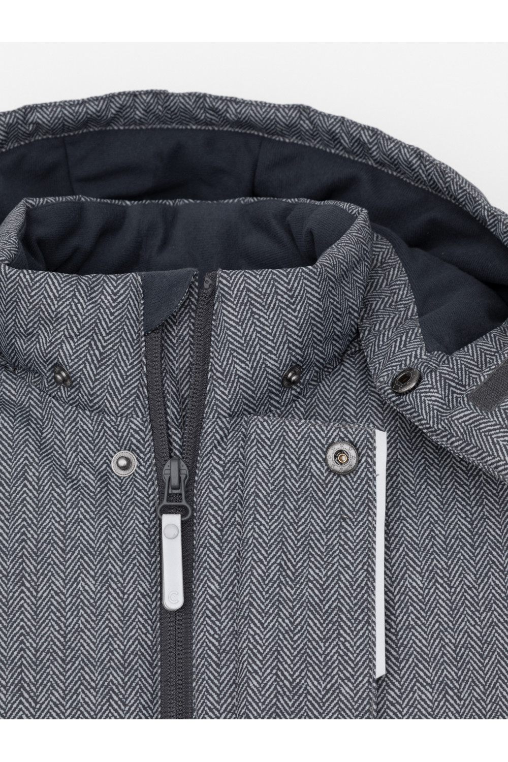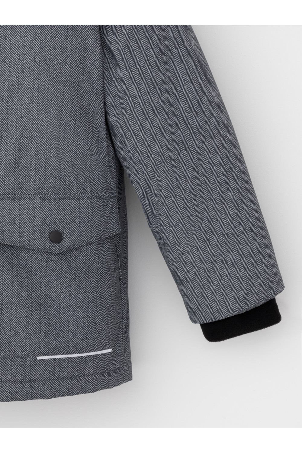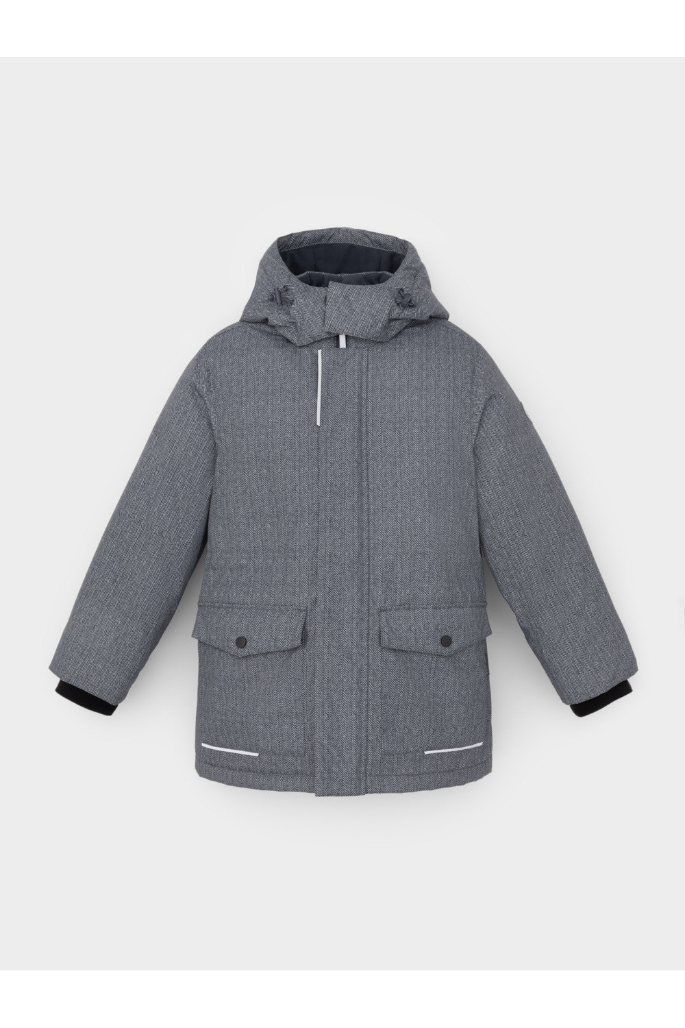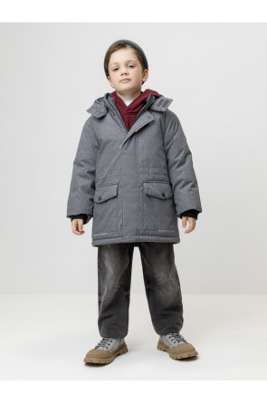 Зимняя куртка для мальчика с утеплителем SEE®: 300 г/м2. Выполнена из мембранной ткани с дополнительной тефлоновой обработкой, которая предохраняет изделие от загрязнений и отталкивает влагу. Подклад выполнен из 100% полиэстера Tricot. Куртка застёгивается на молнию и внешнюю планку с магнитными кнопками, предусмотрена защита подбородка. Съёмный капюшон на кнопках и липучках имеет эластичную утяжку со стопперами. На рукавах внутренние эластичные манжеты. Два накладных кармана с клапанами по бокам. По талии эластичная утяжка со стопперами. Во всех изделиях верхнего ассортимента для безопасности ребёнка предусмотрены светоотражающие элементы.