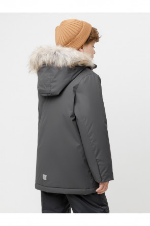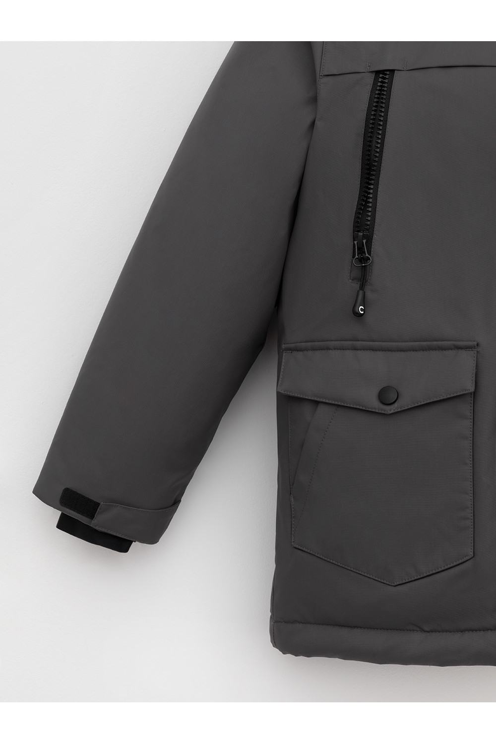 Зимняя куртка для мальчика с утеплителем SEE®: 250 г/м2. Выполнена из мембранной ткани с дополнительной тефлоновой обработкой, которая предохраняет изделие от загрязнений и отталкивает влагу. Подклад выполнен из 100% полиэстера Tricot. Куртка застёгивается на молнию и внешнюю планку с металлическими кнопками, предусмотрена защита подбородка. Съёмный капюшон на кнопках и липучках имеет эластичную утяжку со стопперами и отстёгивающуюся опушку из искусственного меха, регулируется по глубине. На рукавах внутренние эластичные манжеты, ширина рукава регулируется при помощи липучки. По бокам два накладных кармана и два кармана с молниями на груди. По талии эластичная утяжка со стопперами. Во всех изделиях верхнего ассортимента для безопасности ребёнка предусмотрены светоотражающие элементы.