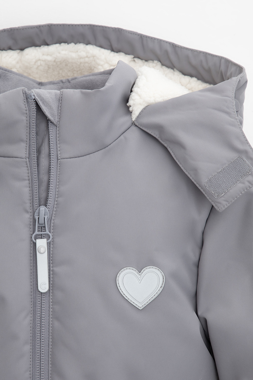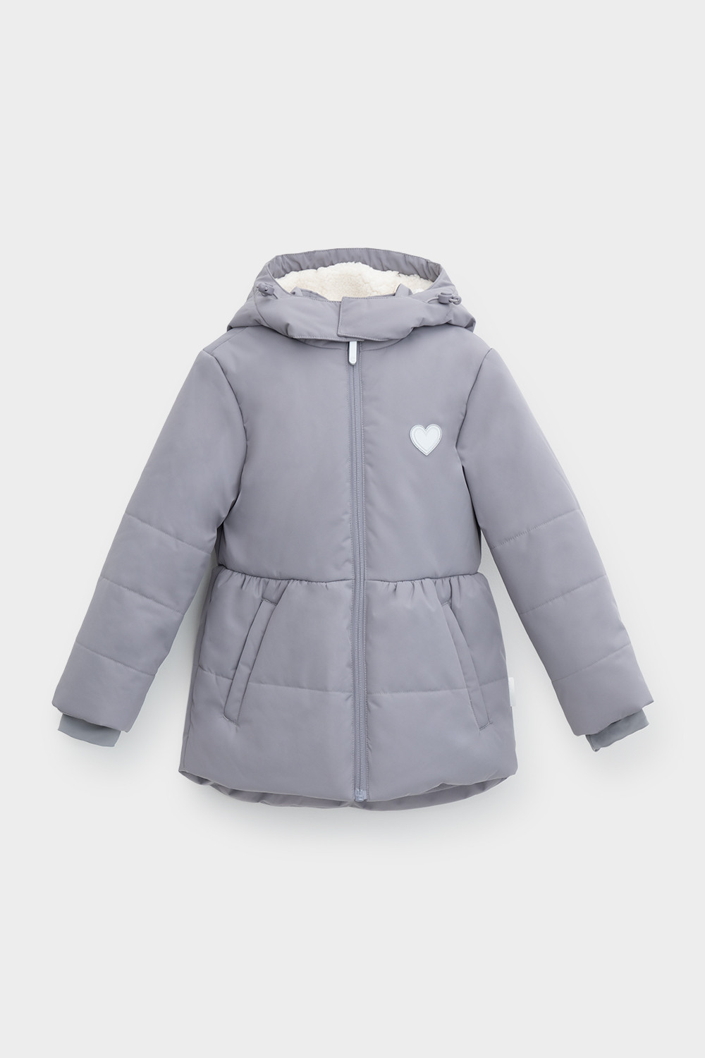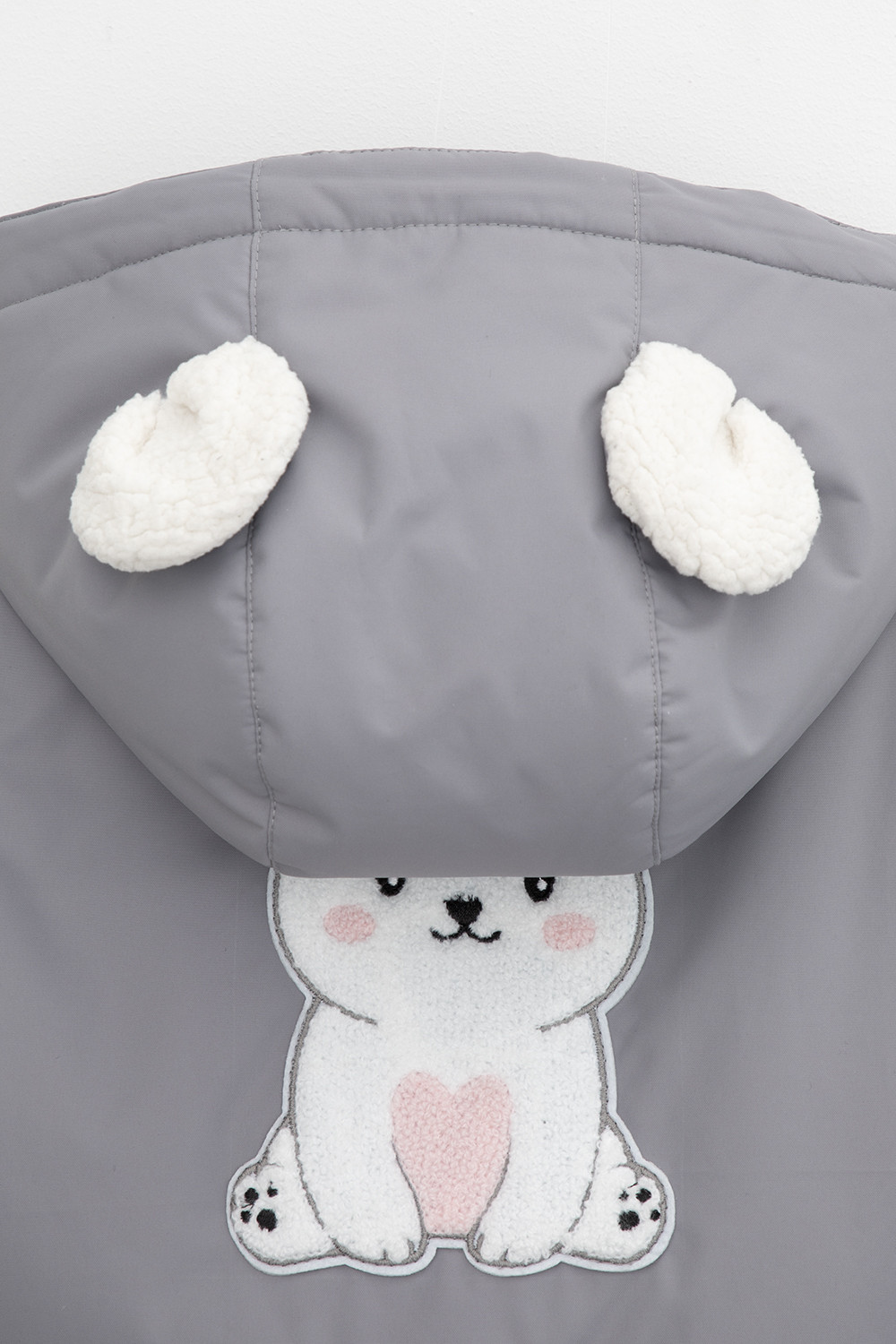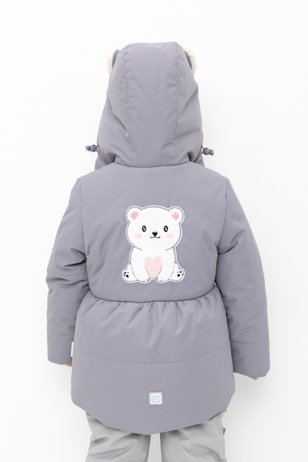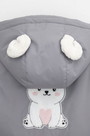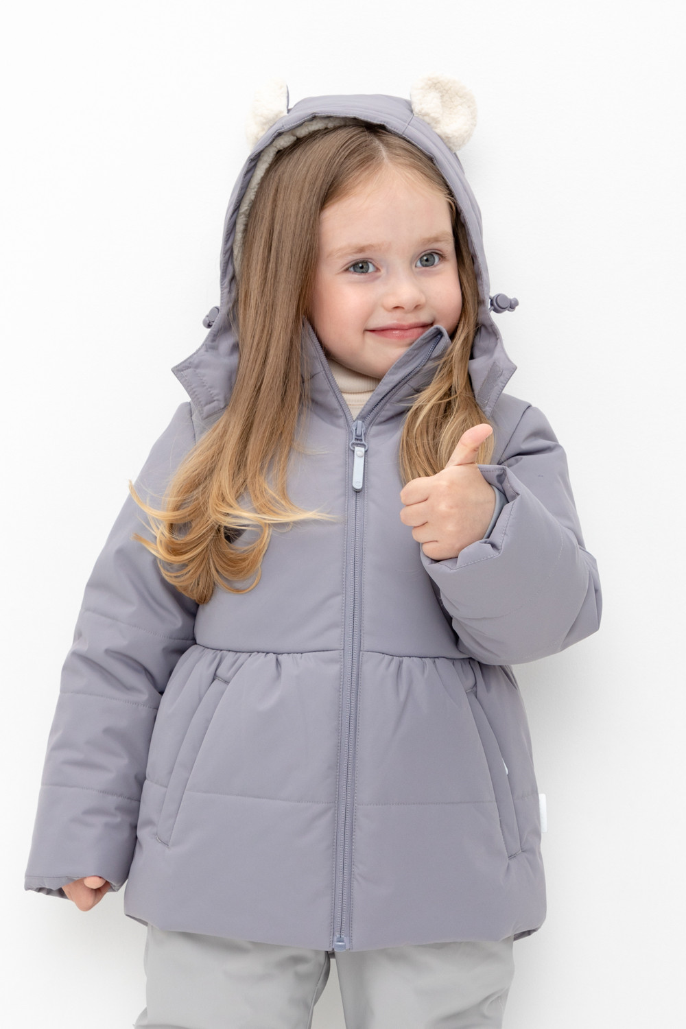 • Несъёмный капюшон с декоративными ушками и подкладом из флиса утягивается с помощью эластичной утяжки со стопперами.